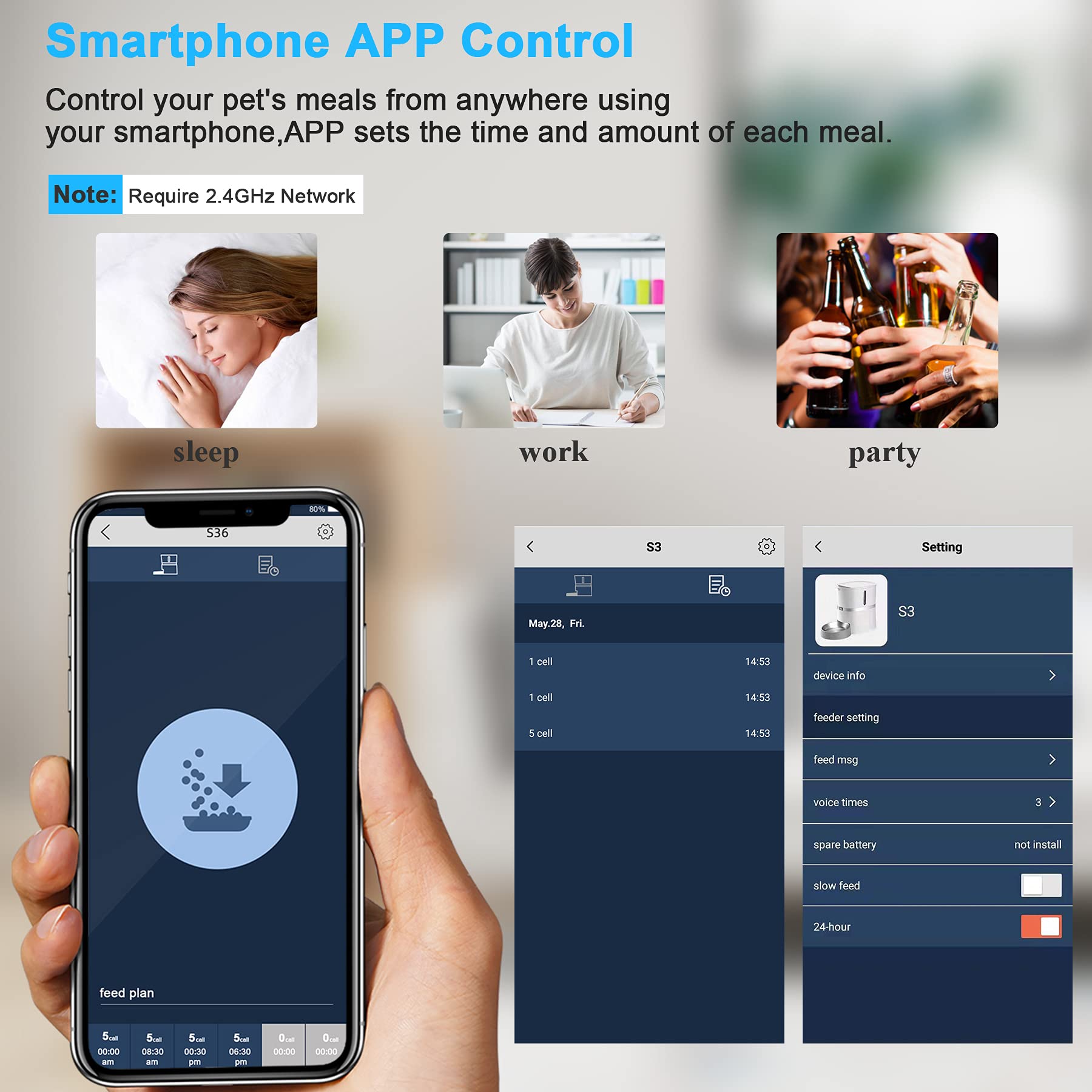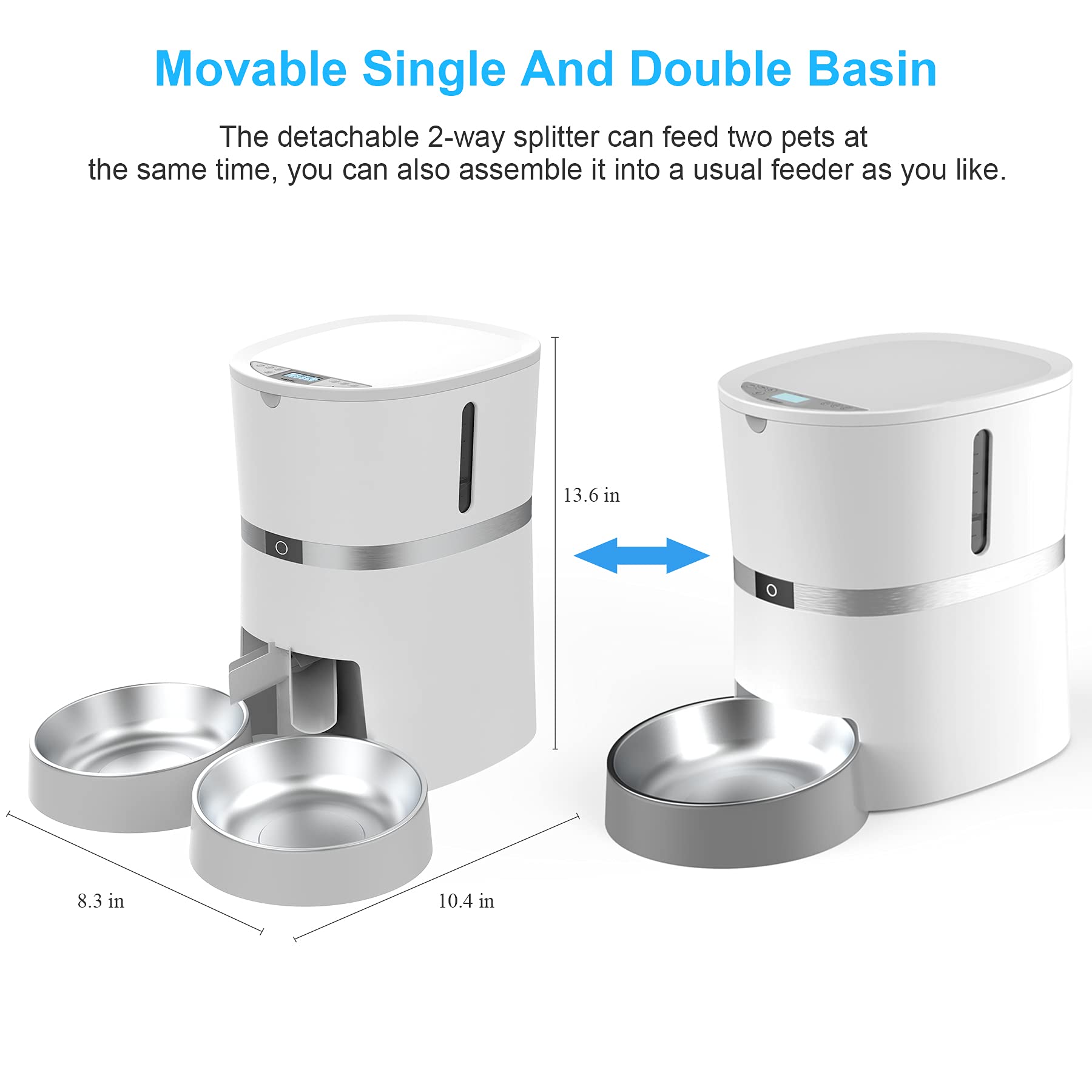 2.4G WiFi Comedero Automático para Gatos y Perros & Múltiples Mascotas,Dispensador de Comida con Control Remoto de Aplicación,10s grabación de Voz,Programable Tiempo de la Comida y Porciones