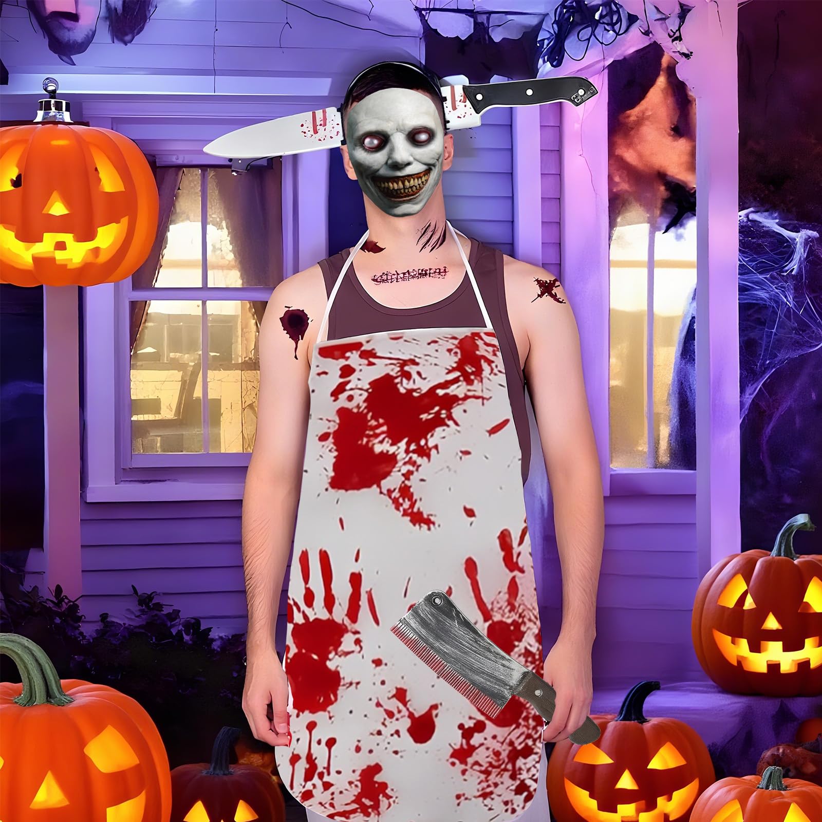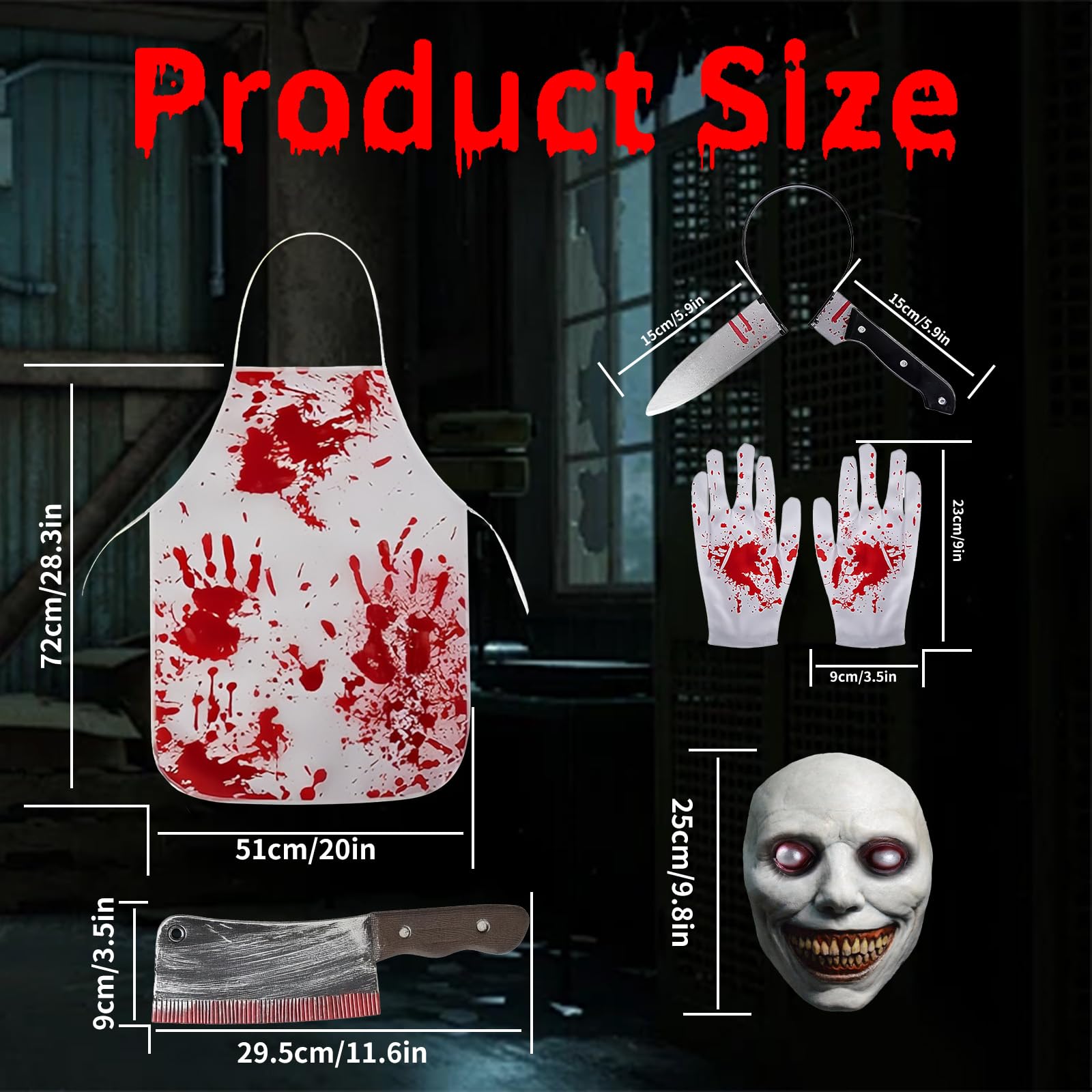 Disfraz 5 Piezas Halloween Hombre Adulto, Ensangrentado Disfraces Terroríficos para Halloween con Delantal Halloween Cuchillo Falsos Máscara Diadema Cuchillo para Adultos Cosplay Fotos Fiesta