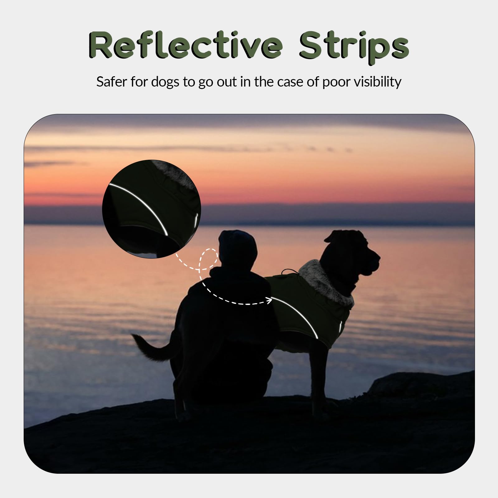 Abrigo Invierno Cálido para Perros, Chaqueta Abrigadora de Invierno Chaleco a Prueba de Viento Chaqueta de Felpa Cálido Reflectante Chaleco de Algodón Suave para Cachorro(Verde Militar, L)
