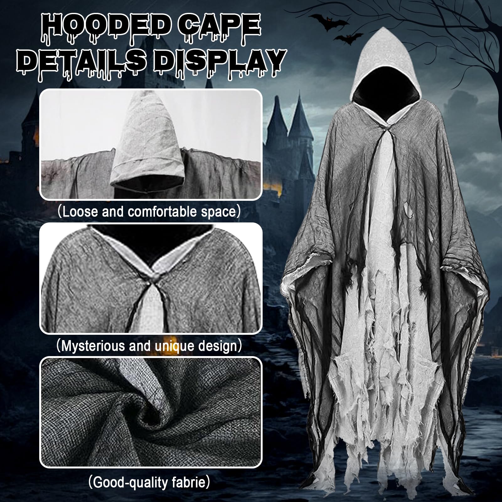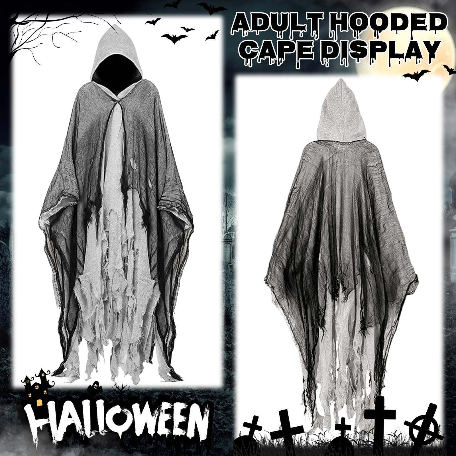 - ❤【Capa de talla única】La capa con capucha de Halloween mide aproximadamente 180 cm de largo con capucha y es adecuada para la mayoría de los adultos. Su talla universal se adapta perfectamente al cuerpo y su corte holgado permite combinarla con cualquier disfraz.