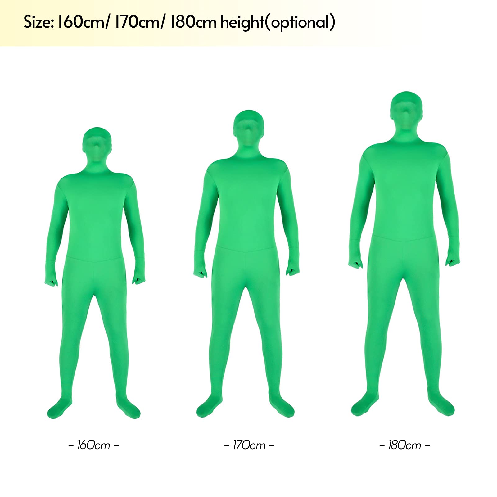 Andoer Traje unisex de cuerpo entero en color verde para fotografías y técnica audiovisual Chroma Key, disfraz elástico para fotos,efectos especiales, cosplay, carnaval, 180 cm de altura.