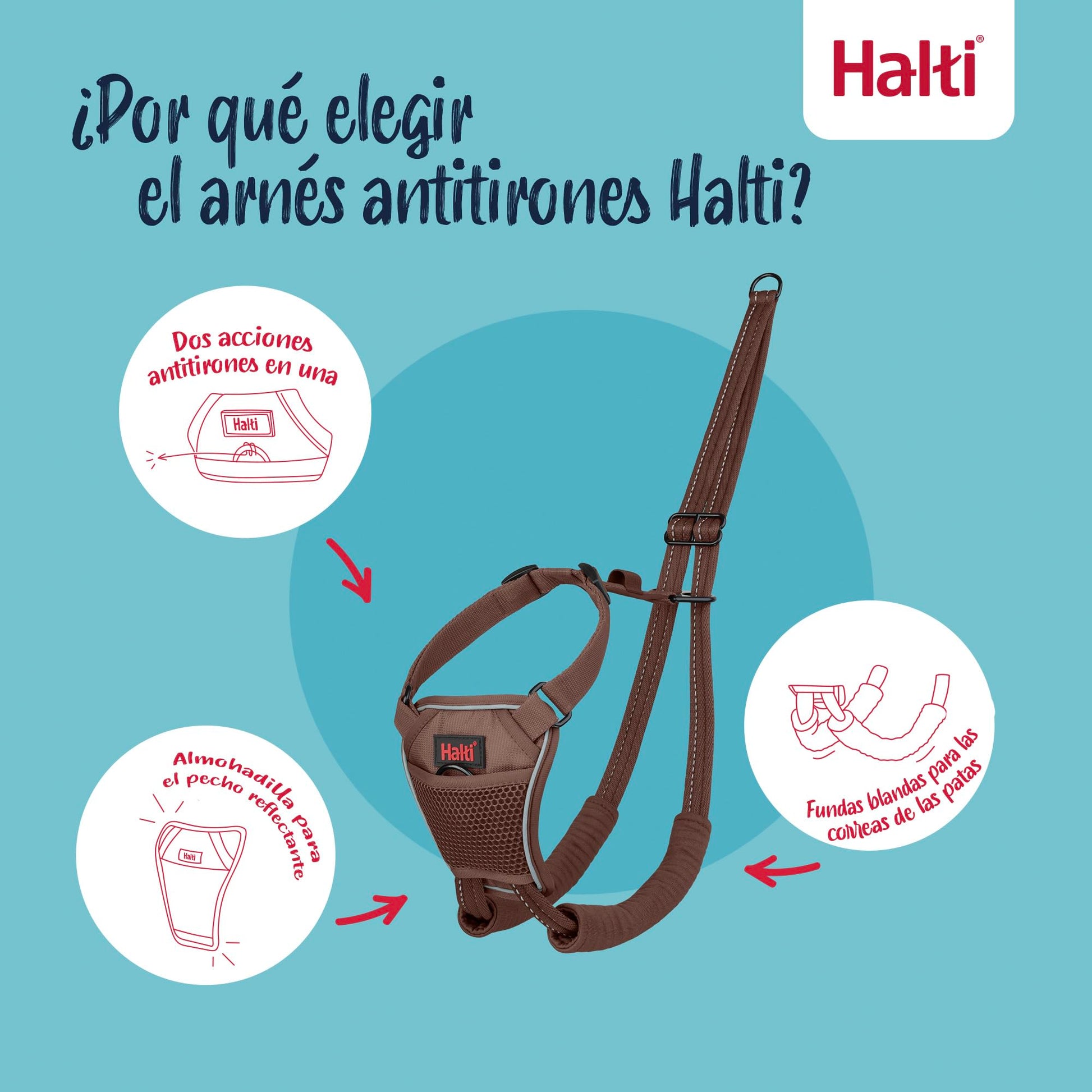 Arnés anti tirones HALTI - Para evitar que tu perro tire de la correa, Ajustable, Ligero y Fácil de Usar. Reflexiva Adiestramiento canino Arnés para perros medianos (Talla M, Nogal Intenso)
