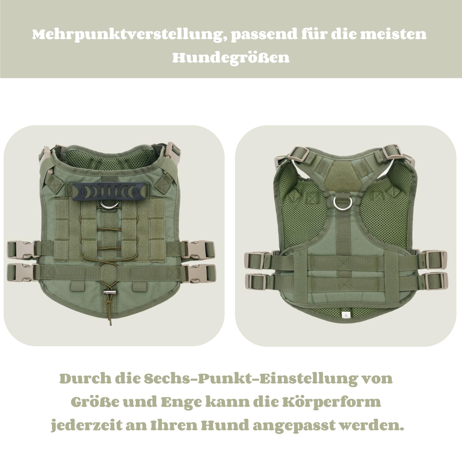 - Movimiento más cómodo: un arnés táctico para perros generalmente está hecho de material suave y duradero y permite que su mascota se mueva más libremente sin estar restringido por un collar. Esto hace que el arnés táctico para perros sea más adecuado para mascotas que necesitan mucho ejercicio, como correr, caminar y jugar. Un arnés para perros grandes o perros medianos es especialmente adecuado aquí.