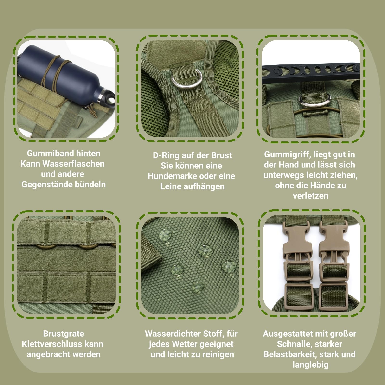 - Garantizar la seguridad: un arnés táctico para perros le permite controlar mejor a su mascota, ya que generalmente está hecho de material resistente y diseño. Esto significa que puedes controlar mejor a tu mascota y evitar un comportamiento incontrolado si tu mascota quiere huir repentinamente o tira de la correa. Un arnés de seguridad para perros es especialmente adecuado para perros medianos o perros grandes.