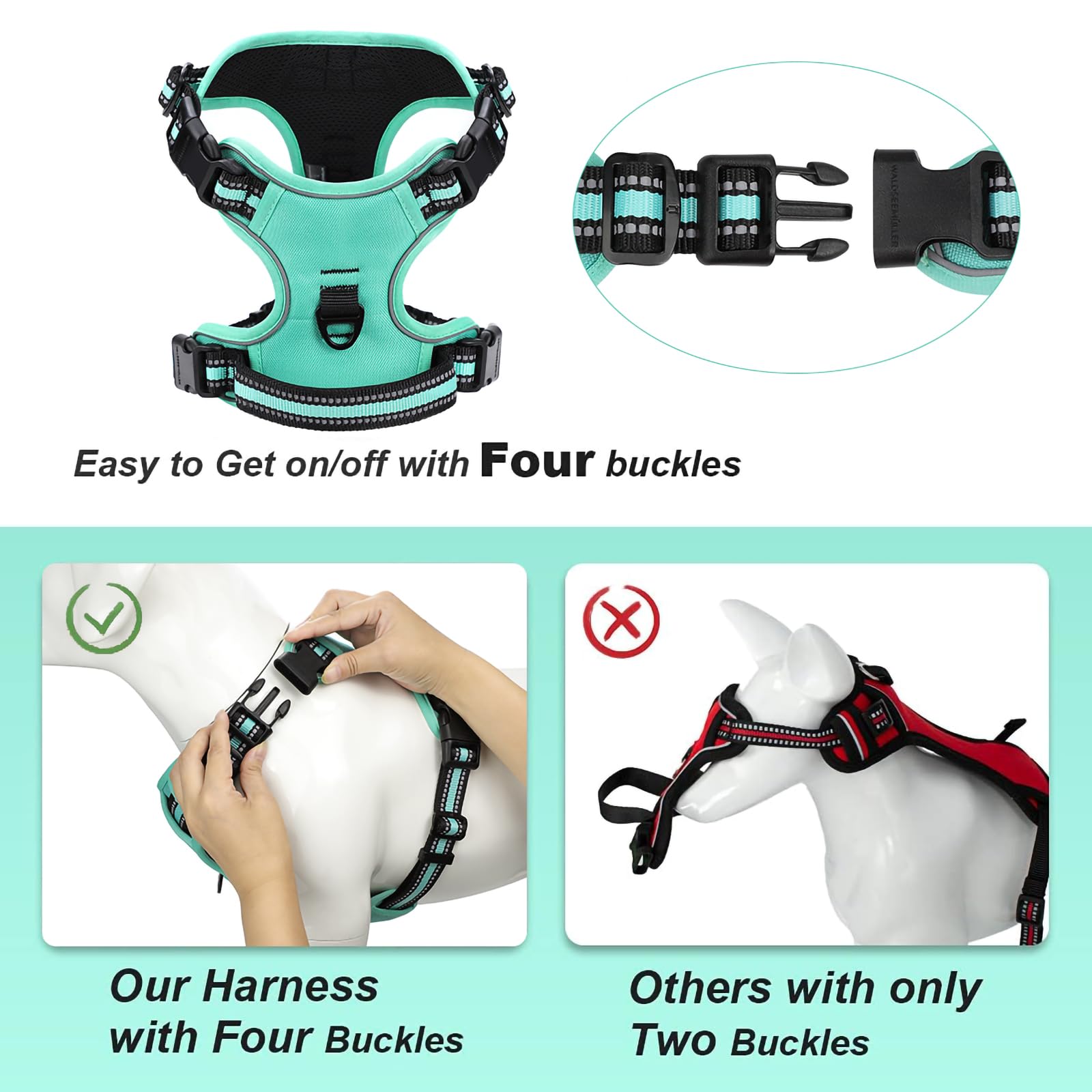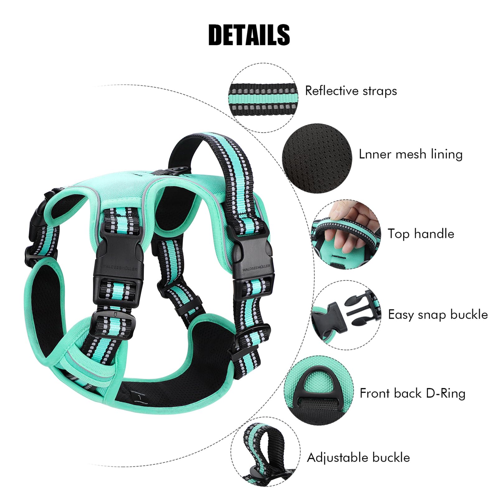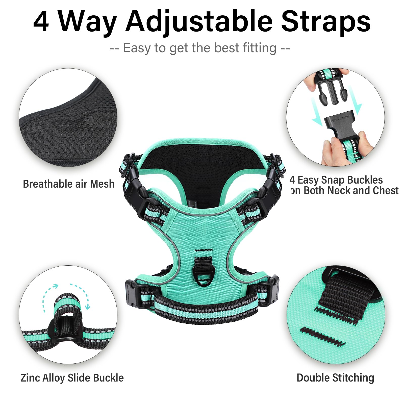- Fácil de poner y arnés ajustable - las correas ajustables en cuatro direcciones brindan un ajuste cómodo pero no interfieren con la movilidad de su perro mientras hace ejercicio. También puede ofrecer un ajuste ideal con espacio de crecimiento adicional y sin preocupaciones por resbalones o asfixia. Hacer que el pecho y el cuello de nuestro perro estén libres de toda presión y que no odie llevar arnés.