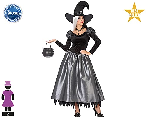 Este disfraz para niña adolescente (de 14 a 16 años) consta de un vestido de terciopelo negro y satén gris y su sombrero puntiagudo de terciopelo negro. Encontrarás muchos accesorios para complementar este atuendo, que se venden por separado en la tienda. Contenido del paquete: 1 vestido:
