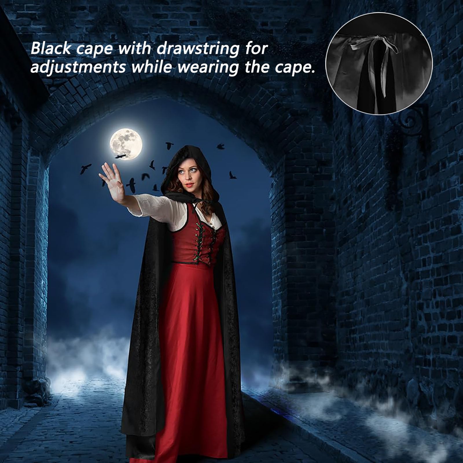- 【Fácil de usar】 sujeta la Capa Negra, simplemente átala en el cuello para que esté segura en tus hombros. Fácil de llevar en casa o durante el tiempo que tu personaje lo requiera. Te dará la mejor experiencia cómoda y es una gran manera de hacer que tu fiesta esté llena de diversión e impresiona a tus invitados.