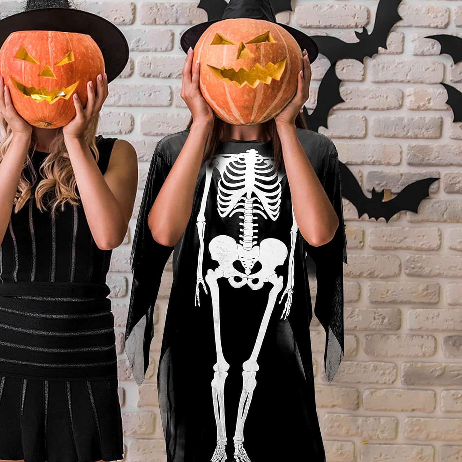 Disfraz con Guantes y Máscara Disfraz Esqueleto Mujer Terror disfrazs halloween hombre Ligero para Carnavales Casas Embrujadas Obras Teatro Cosplay Accesorios Fotografía