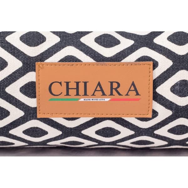 - Contenido del envío: cama CHIARA para perros pequeños y medianos. Funda y cojín lavables. Cojín interior reversible. Tamaño 65 x 50 cm. Material: cojín de terciopelo/lona de algodón. Color: negro