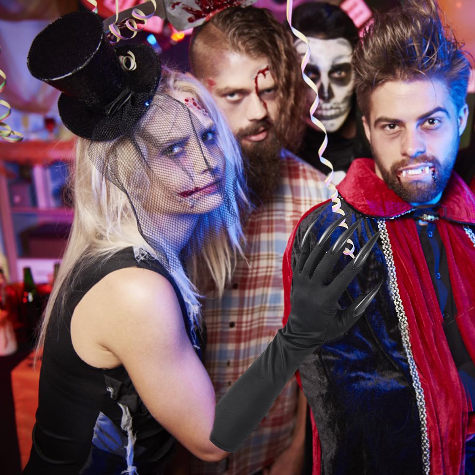 - 【Diseño único】Estos guantes negros largos mujer combinan el negro clásico con diseños de uñas artificiales. Las uñas artificiales ofrecen un toque novedoso y misterioso, que complementa fácilmente varios estilos de disfraces. Son el accesorio perfecto para las fiestas de Halloween.