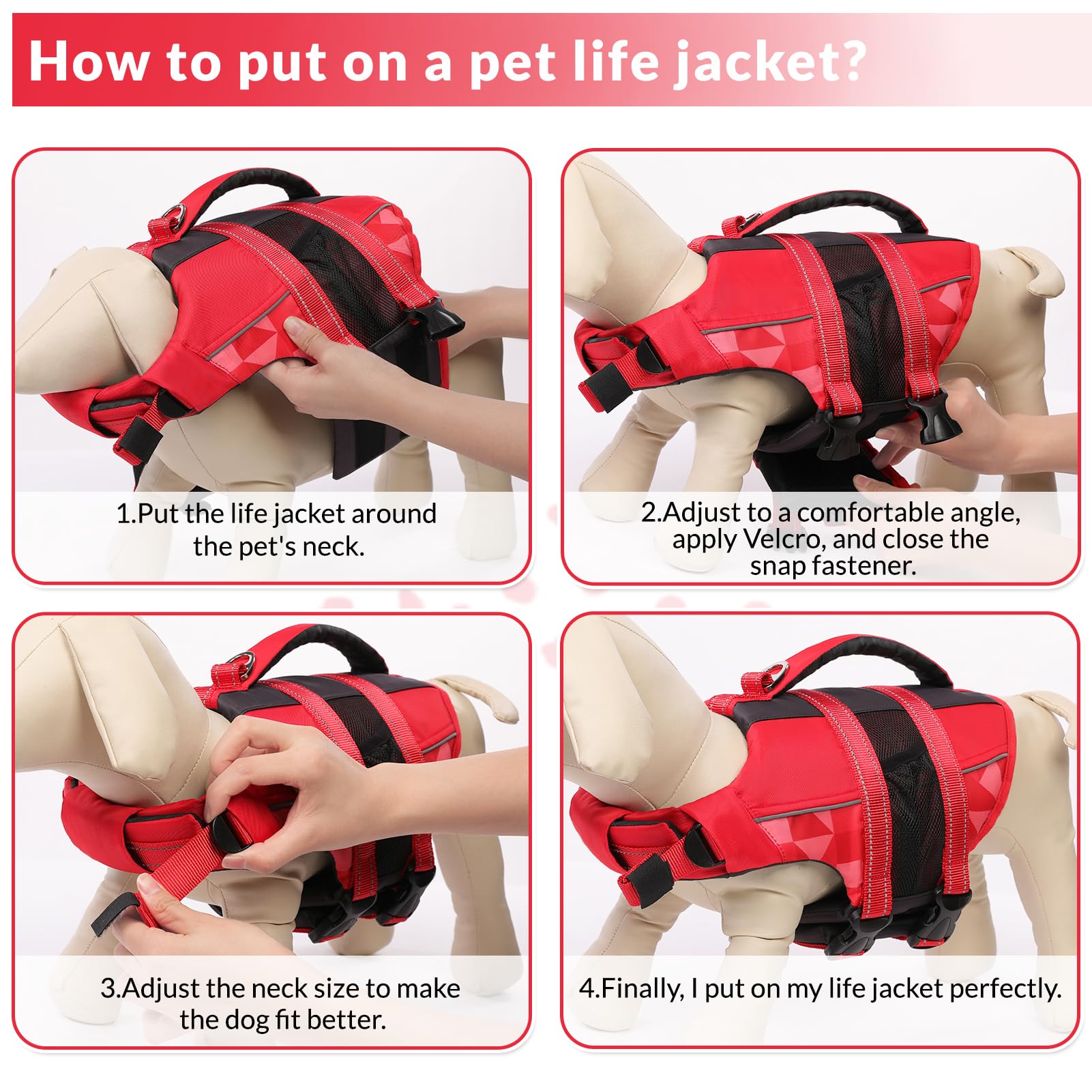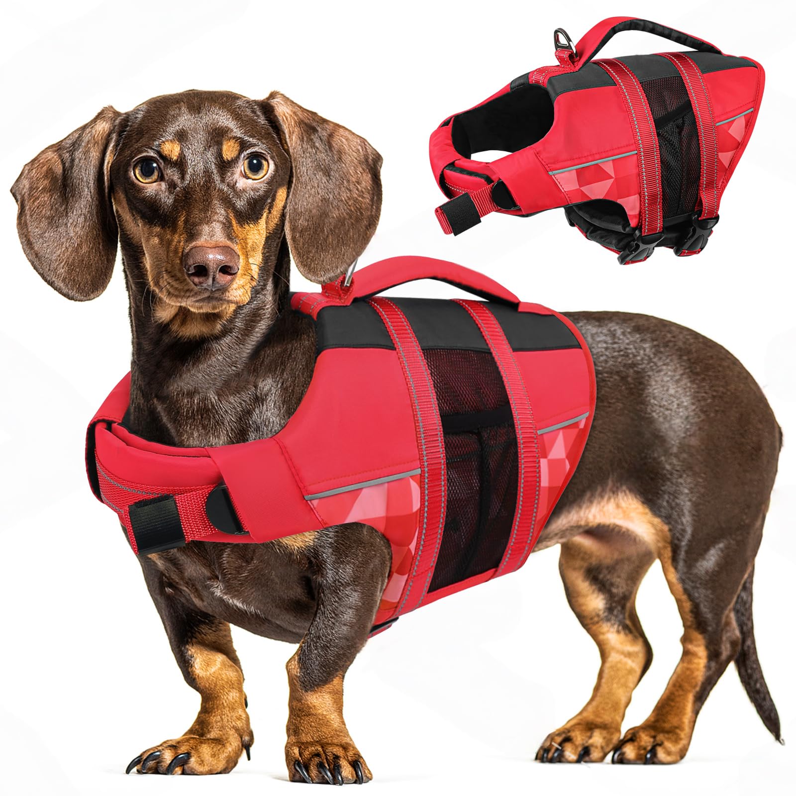 Chalecos Aalvavidas para Perros, Flotador Ajustable para Mascotas con Asa, Traje de Baño de Seguridad para el Agua para Navegar en la Piscina de la Playa, Rojo, M