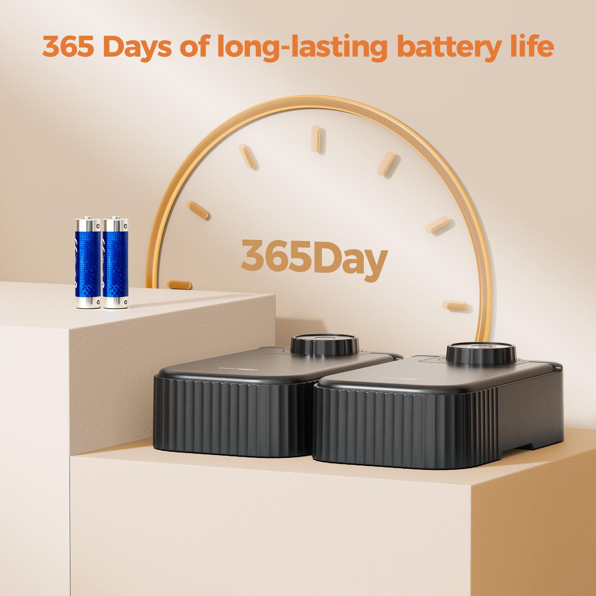 Di adiós a los cables y podrás colocar tu comedero para mascotas en cualquier lugar, se puede usar con 1 pila AA para 365 días de energía continua.