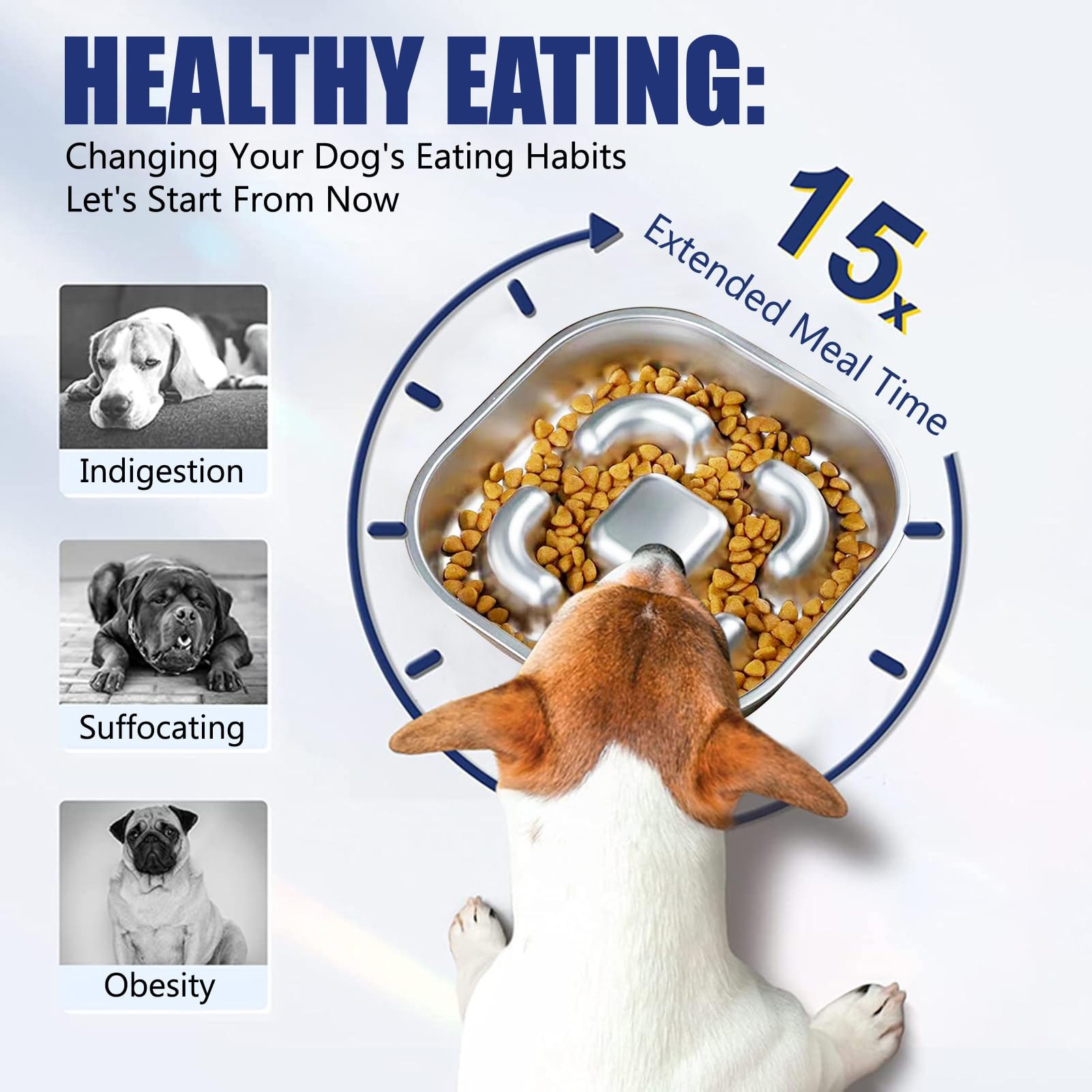 Comedero para Perro Mascotas de Acero Inoxidable,Comedero Lento para Perros,Comedero Perro Antivoracidad para Mascotas Medianas y Grandes, Plato Interactivo, Evita la Ansiedad