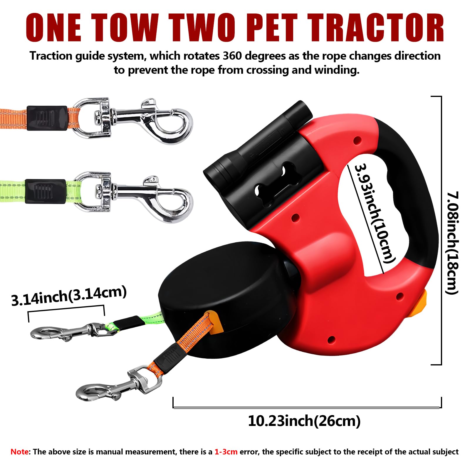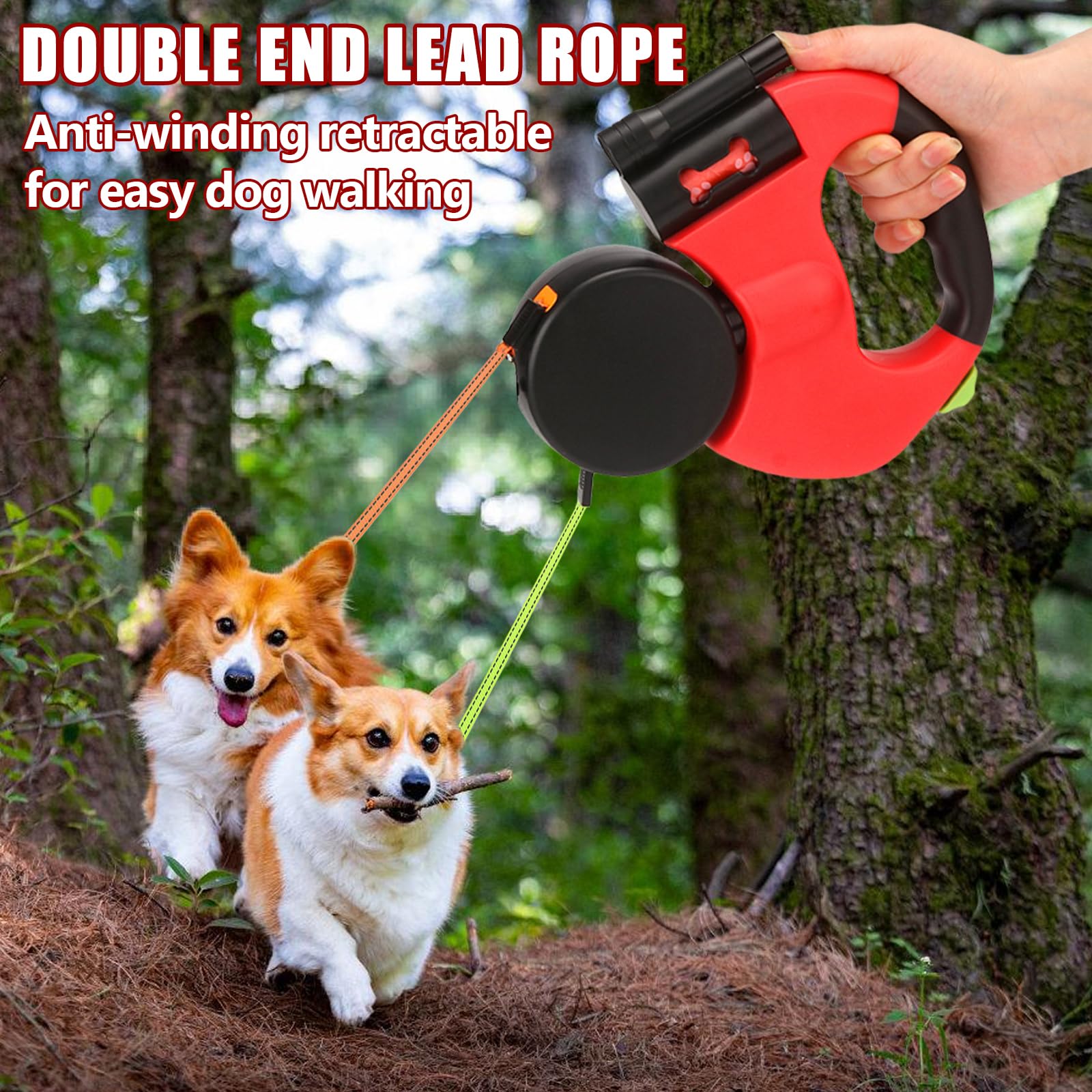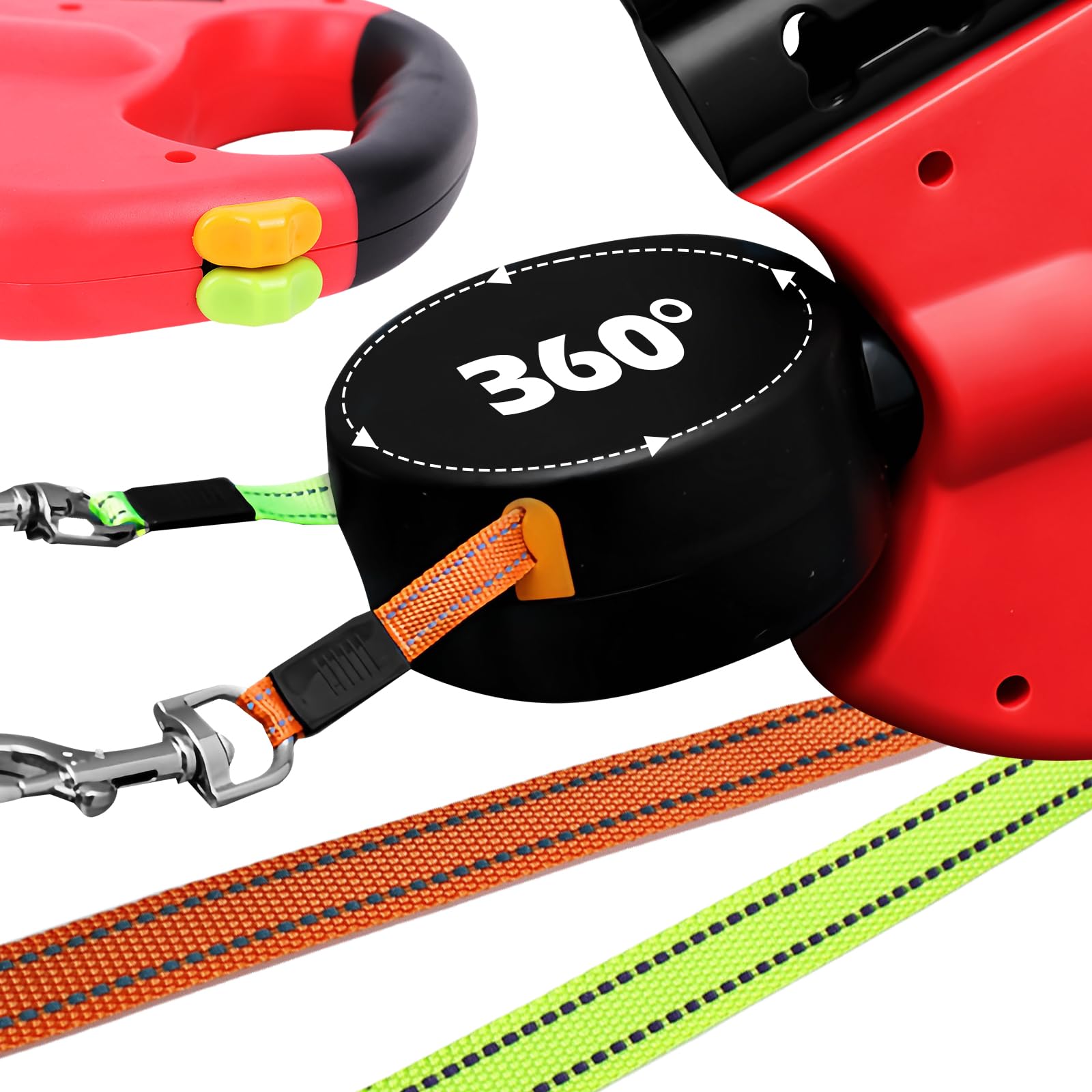 - Fácil de usar: la correa doble para perros es fácil de usar y ofrece una rotación de 360°. Si solo vas a pasear a un perro, puedes guardar la otra correa cómodamente sin molestar a la correa retráctil del perro.