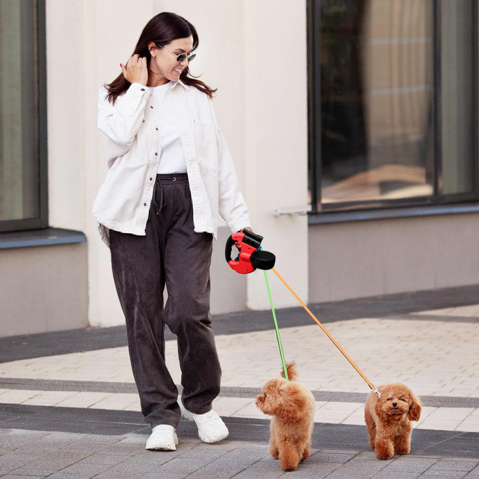 La correa retráctil para perros te permite caminar con ambos perros sin tener que lidiar con ellos.