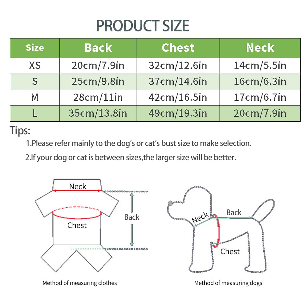 - 【4 tamaños para elegir】El suéter para perros es adecuado para perros pequeños y medianos XS, S, M, L con 4 tamaños para elegir. Las diferentes razas de perros tienen proporciones corporales únicas, por lo que es importante medir el pecho y la espalda de tu perro con precisión antes de comprar ropa abrigada.