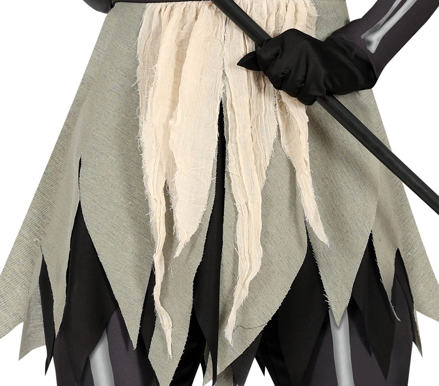 - CONTENIDO DEL DISFRAZ de esqueleto la muerte: vestido con capucha, pantalón. NO_INCLUIDO: guadaña