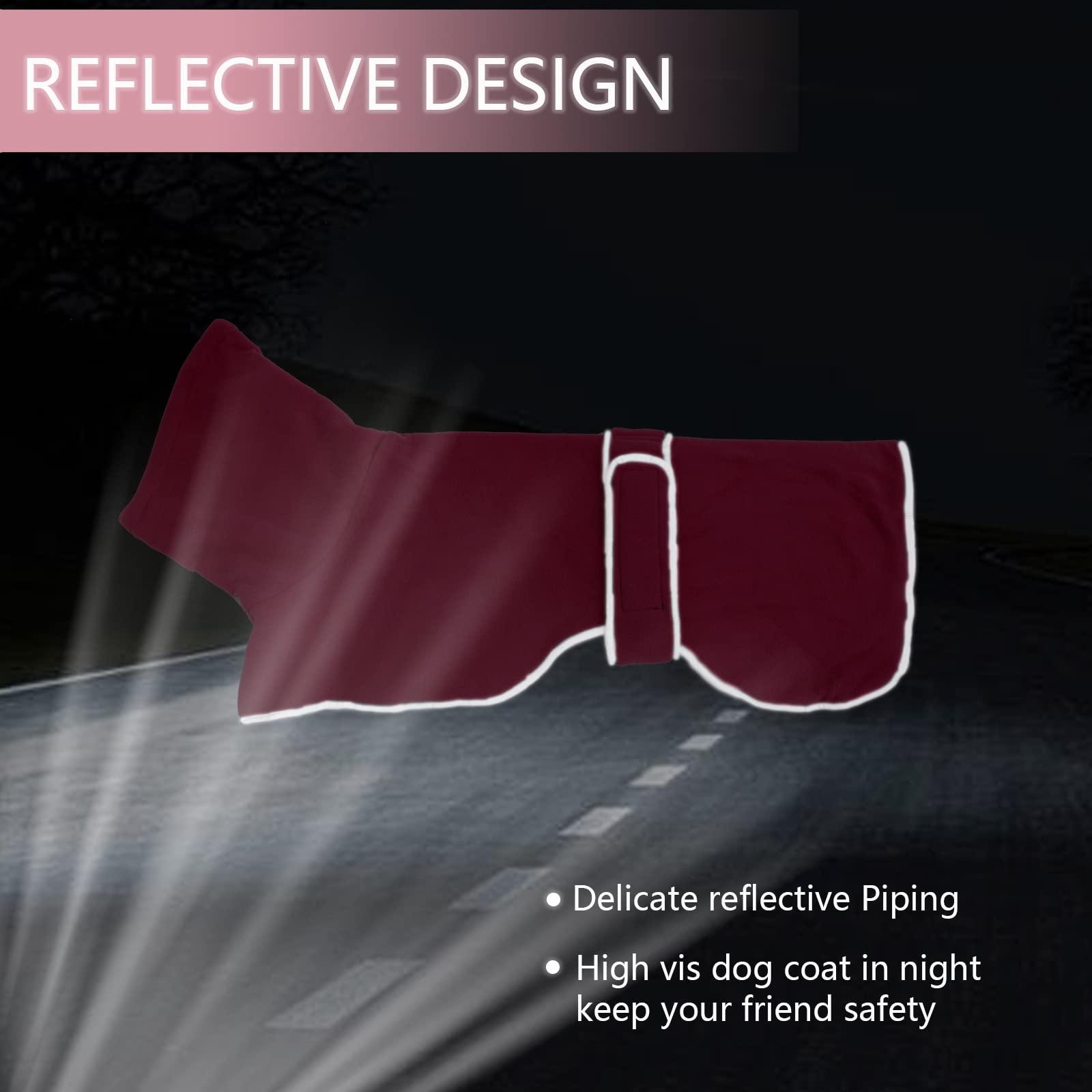 - 2. Forro polar de poliéster de alta calidad + tela reflectante. Añadiendo el elemento más de moda al diseño de tela. El ribete reflectante garantiza la seguridad de tu mascota incluso de noche haciendo que sea más visible.