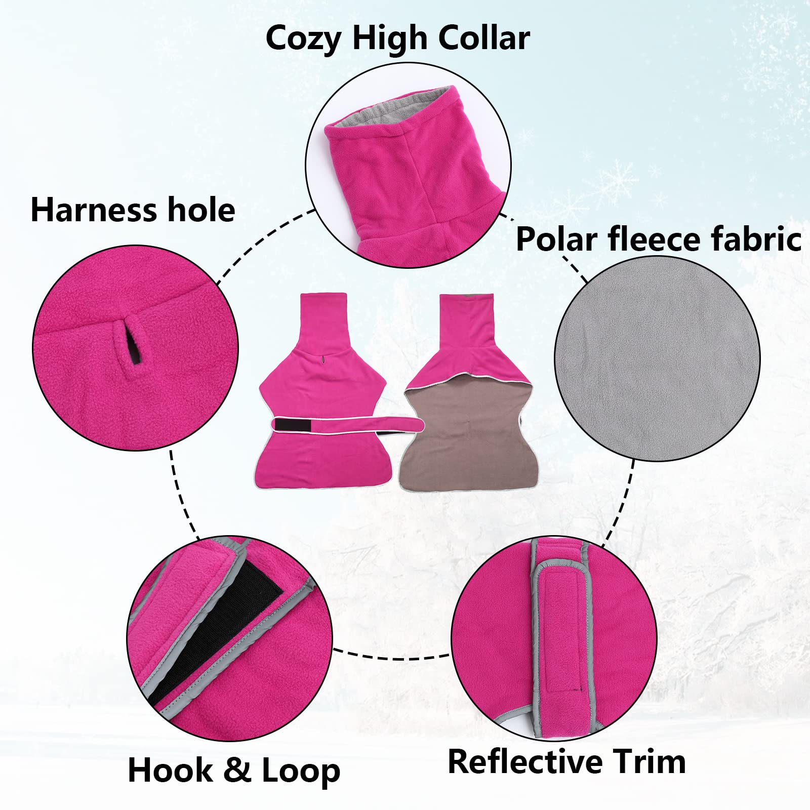Geyecete - Abrigo con Forro Polar para Perro, con Bandas Ajustables, para Invierno Clima frío,Jersey con Agujero del arnés, para medianos y Grandes Perros Galgo-Rosa-XS