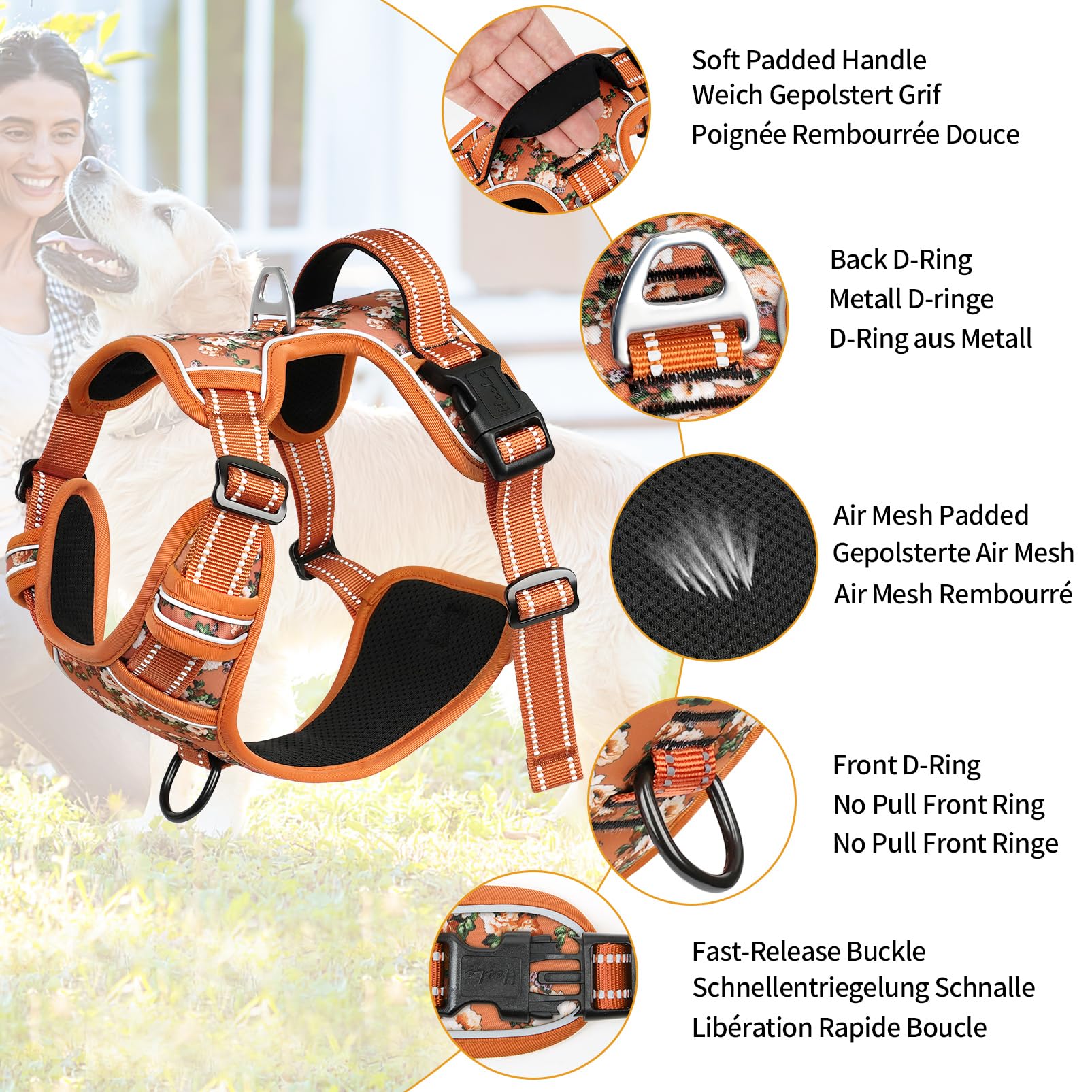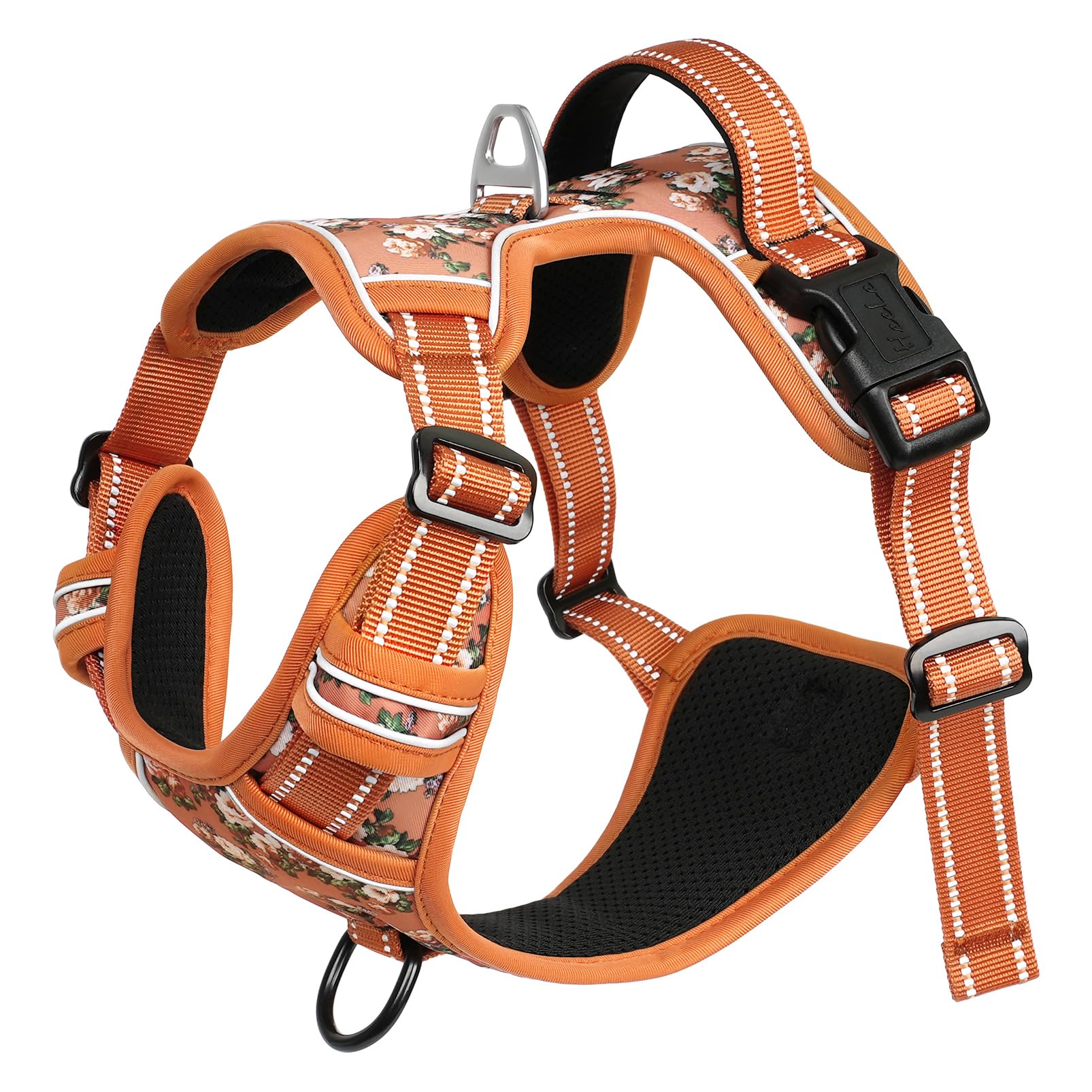 Arnes para Perro Arnes Anti Tirones Transpirable con Agarre Acolchado y Reflectantes Arnés para Perros Easy Safe Arnés para Perro con Bonito Estampado Arnés Perro Pequeños, Flores-Nanranja, S