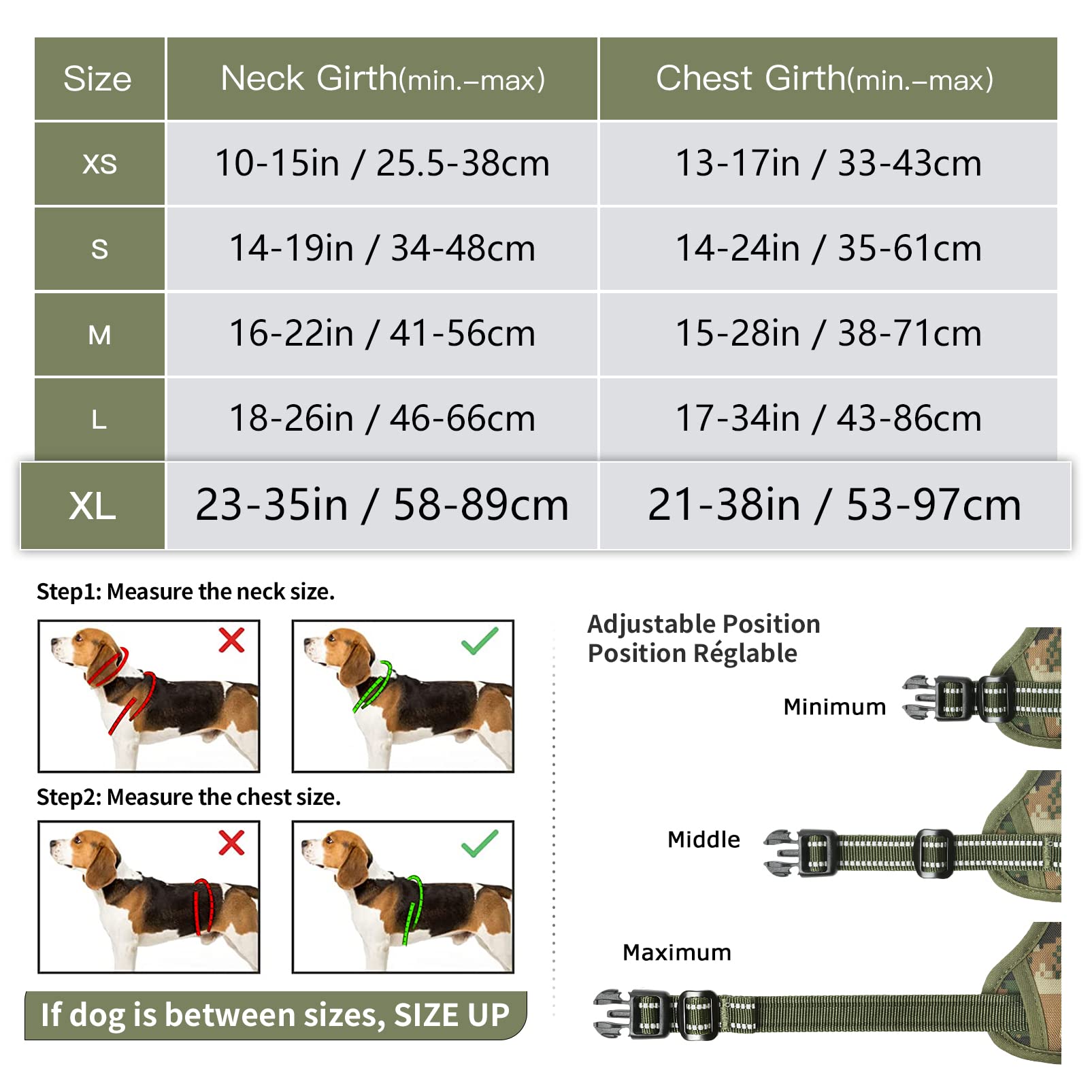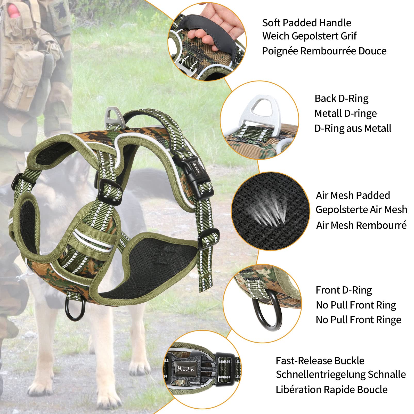 Arnés para Perro Tipo Chaleco Transpirable Acolchado Ajustable Antitirones Reflectante Arnes Perro Grande para Adiestramiento Correr, Camuflaje Verde, XL