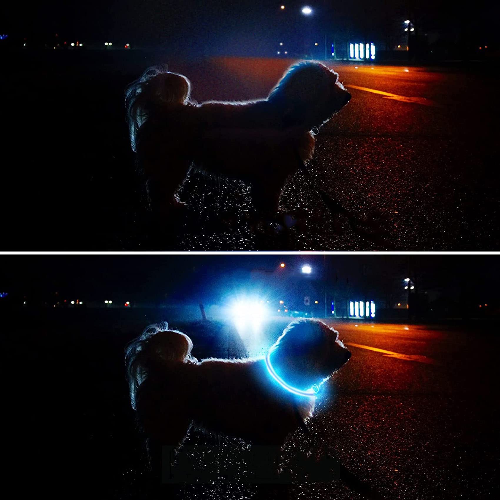 - 【Collar de perro de seguridad】En luz baja o en las condiciones de oscuridad, el collar de luz LED puede ayudar a los vehículos a ver las mascotas que pueden ayudarle a mantener a sus perros seguros.