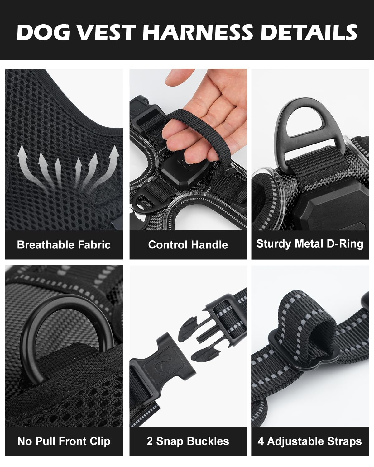 - Ajustable y ajustable: este arnés para perros está equipado con 2 cierres rápidos para que puedas poner y quitar la correa en cuestión de segundos. Además, cuenta con 4 correas fácilmente ajustables en los hombros y el pecho, que se pueden ajustar para adaptarse a perros con diferentes proporciones de cuello y cuerpo sin preocuparse por resbalones