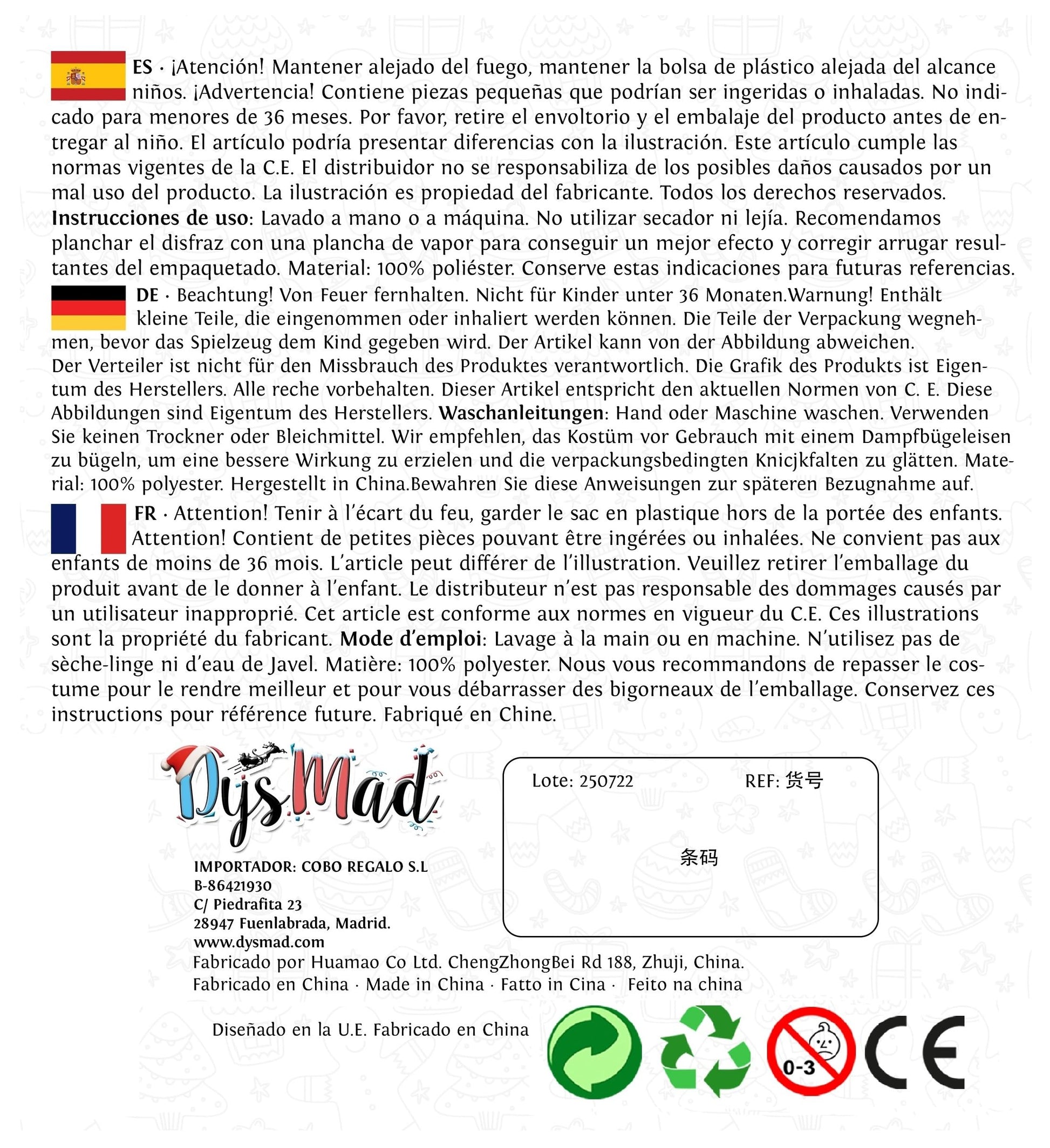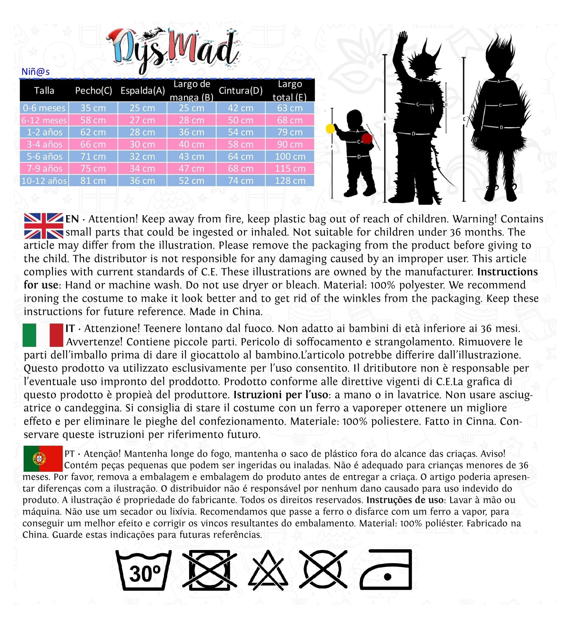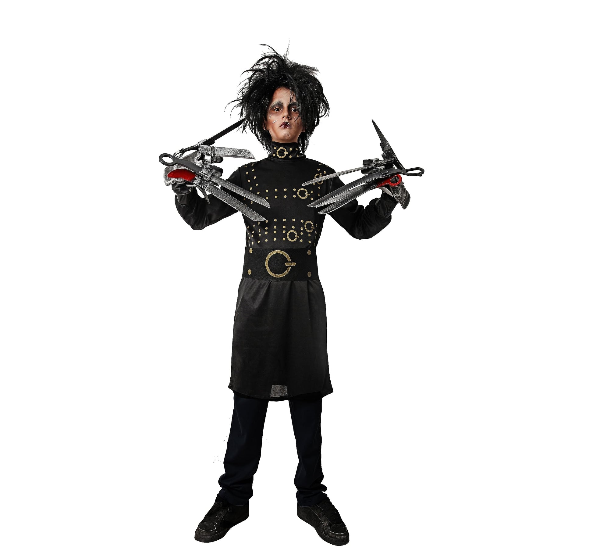 Disfraz Manostijera niño para Halloween. Contiene: Camiseta, cinturón y collar (no incluye tijeras). Disponible en diferentes tallas. (3-4 años, 5-6 años, 7-9 años, 10-12 años) Material: 100% poliéster. Los disfraces son una modalidad de juego muy positiva para los peques. Les permite alejarse del mundo real, desplegar su imaginación y creatividad y crear mundos de fantasía en los que poder ser tal y como siempre han querido. Es un juego perfecto para niños más vergonzosos, ya que los saca de su mundo interior. Advertencia de seguridad