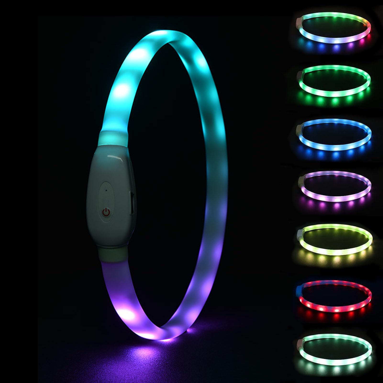 Luces para collar de perro, luces intermitentes recargables, collar de silicona suave impermeable con 9 modos intermitentes, cómodo collar de perro intermitente, luces de collar de perro para