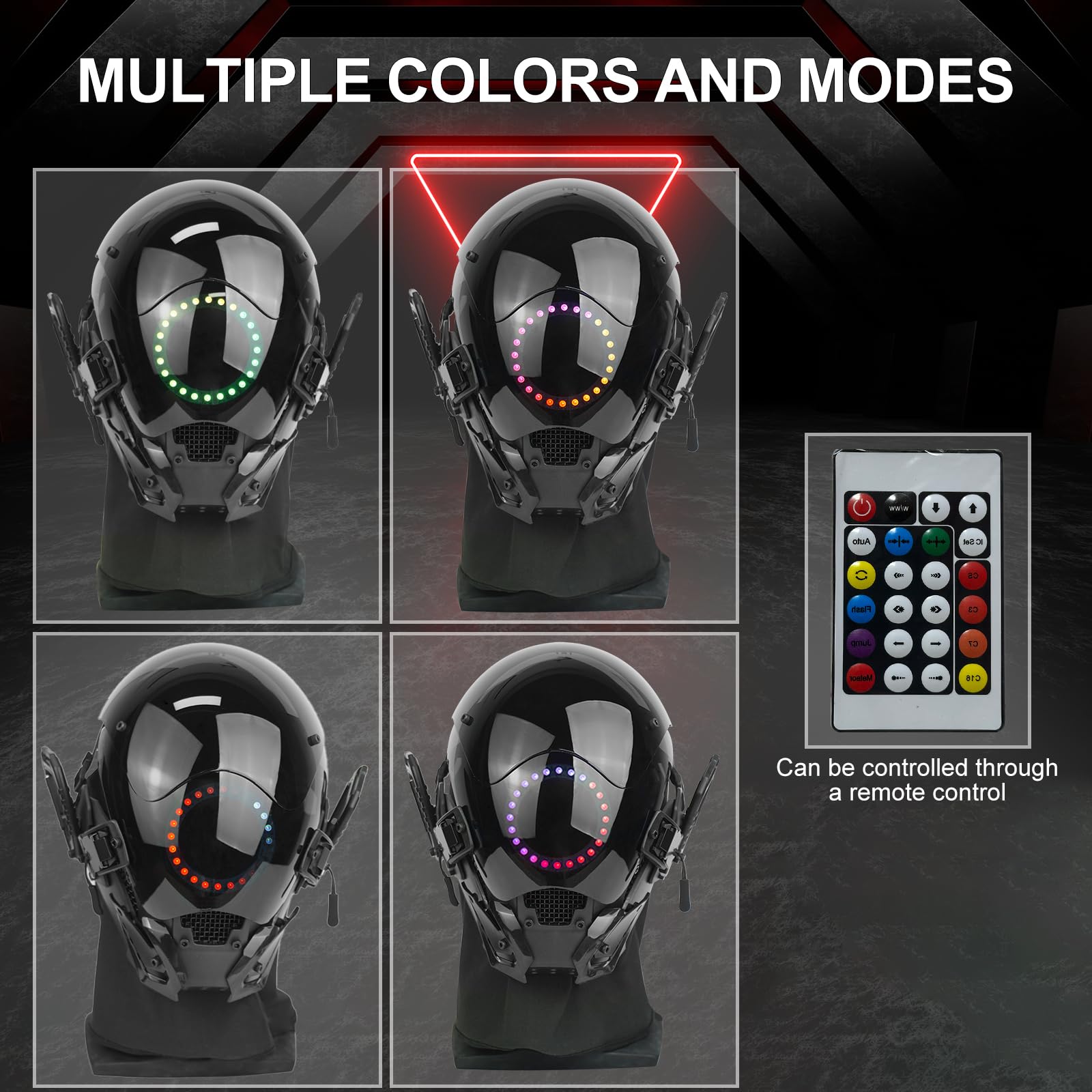 - Diseño de luz redonda multicolor: nuestra máscara punk cuenta con luces LED multicolores brillantes que se pueden ajustar según el estado de ánimo. También hay un efecto de pastilla, por el sonido alto y bajo la luz se iluminará de manera diferente.