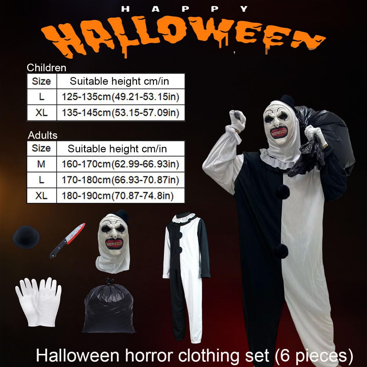 - 【Disfraz Terrifier Adulto Niño】La Máscara de Payaso Terrorífica de Halloween es una de las favoritas de los fanáticos y amantes del terror. Los disfraces de Halloween aterradores que se usan en la noche de Halloween atraerán todas las miradas.