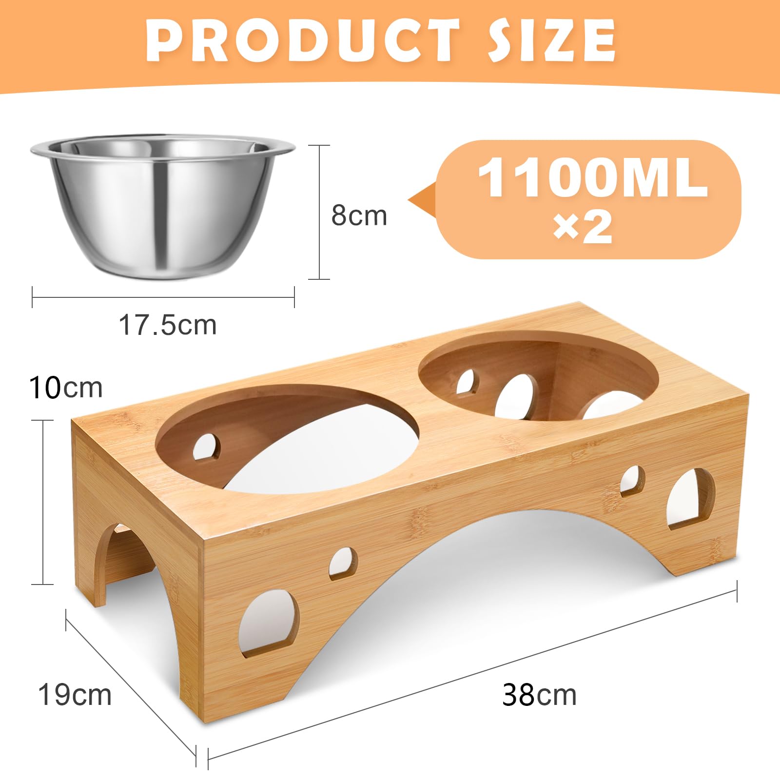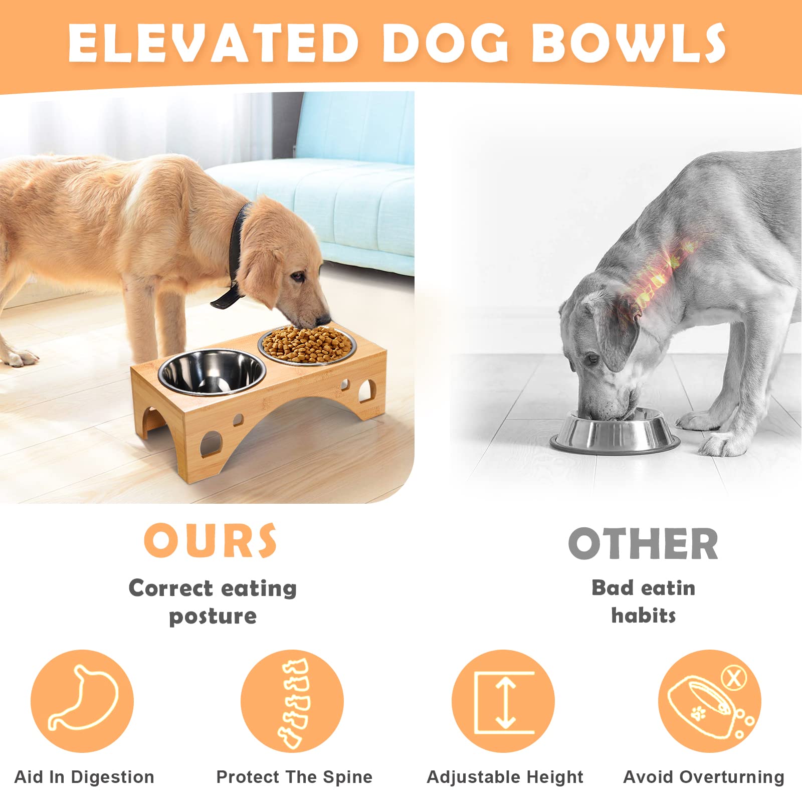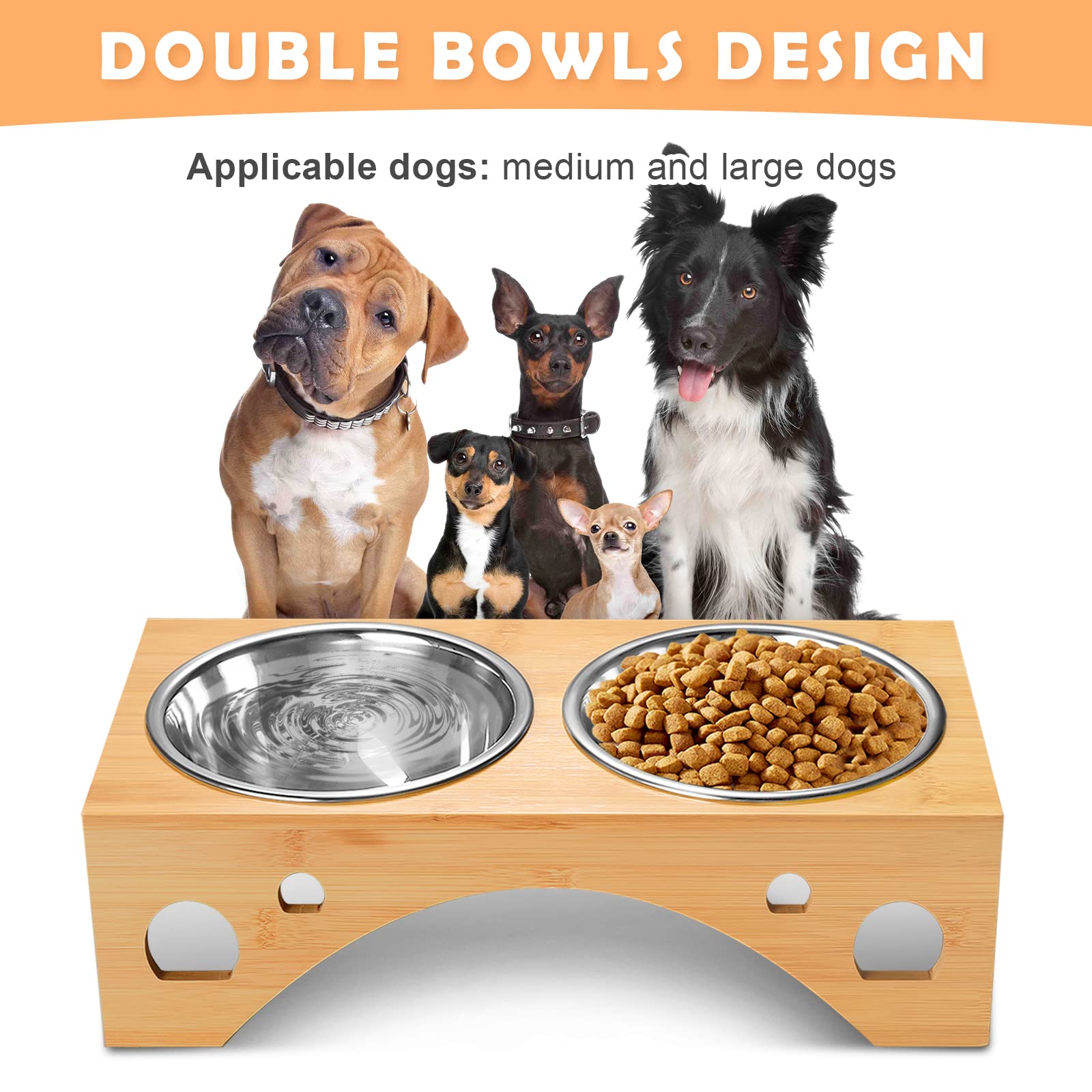 MMcRRx Comedero Perro Elevado 2 * 1100ML, Plato Perro Elevado Grande de Acero Inoxidable, Comedero Doble Alto Platos con Bambú Soportes