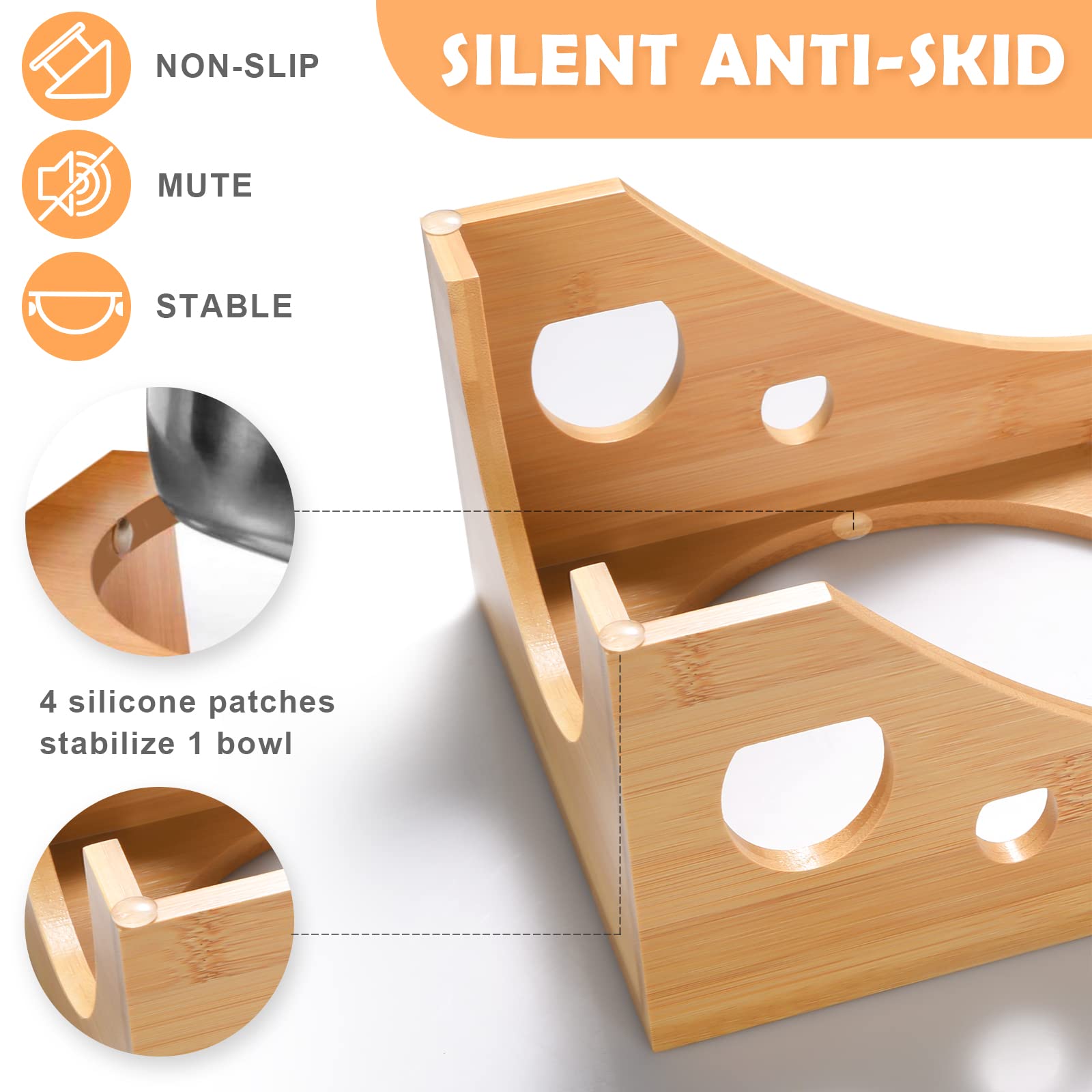 - 【Estantería de bambú natural】La placa de bambú de doble capa es estable para evitar que se derrame la comida y mantener el suelo limpio y ordenado.