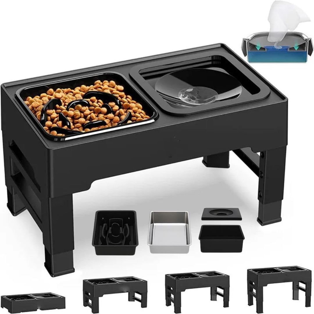 - 🔧 AJUSTABLE - Altura regulable entre 10 y 31 cm. Con 4 niveles de ajuste, este comedero perro elevado se adapta a perros pequeños, medianos y grandes. Ideal para todas las etapas de crecimiento y razas. Se ajusta fácilmente sin herramientas.