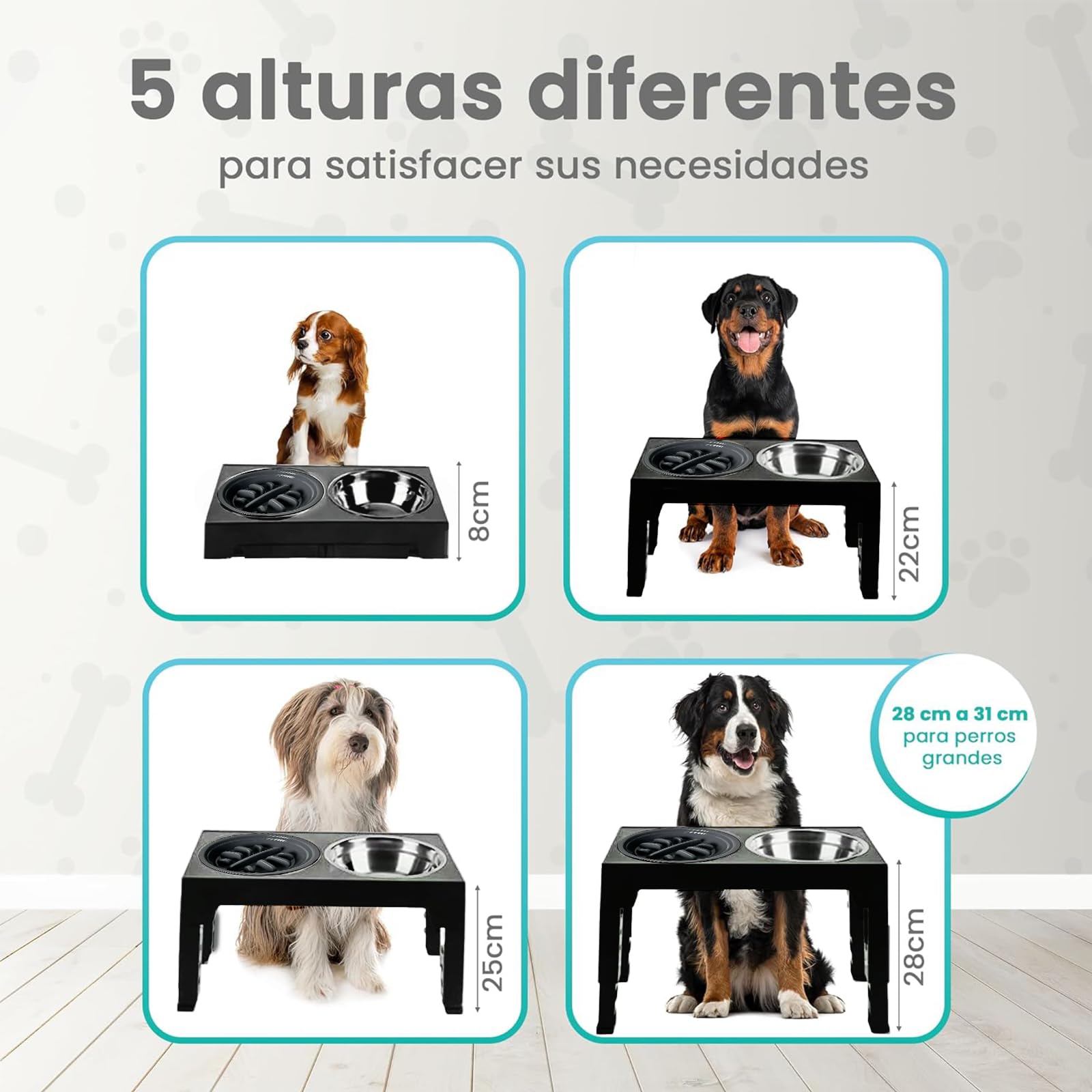 - 🦴 ALTURA AJUSTABLE PARA TODAS LAS ETAPAS DE CRECIMIENTO: Nuestro dog bowl elevador cuenta con varias alturas para adaptarse desde cachorros hasta perros mayores, ofreciendo siempre la máxima comodidad al comer y beber.