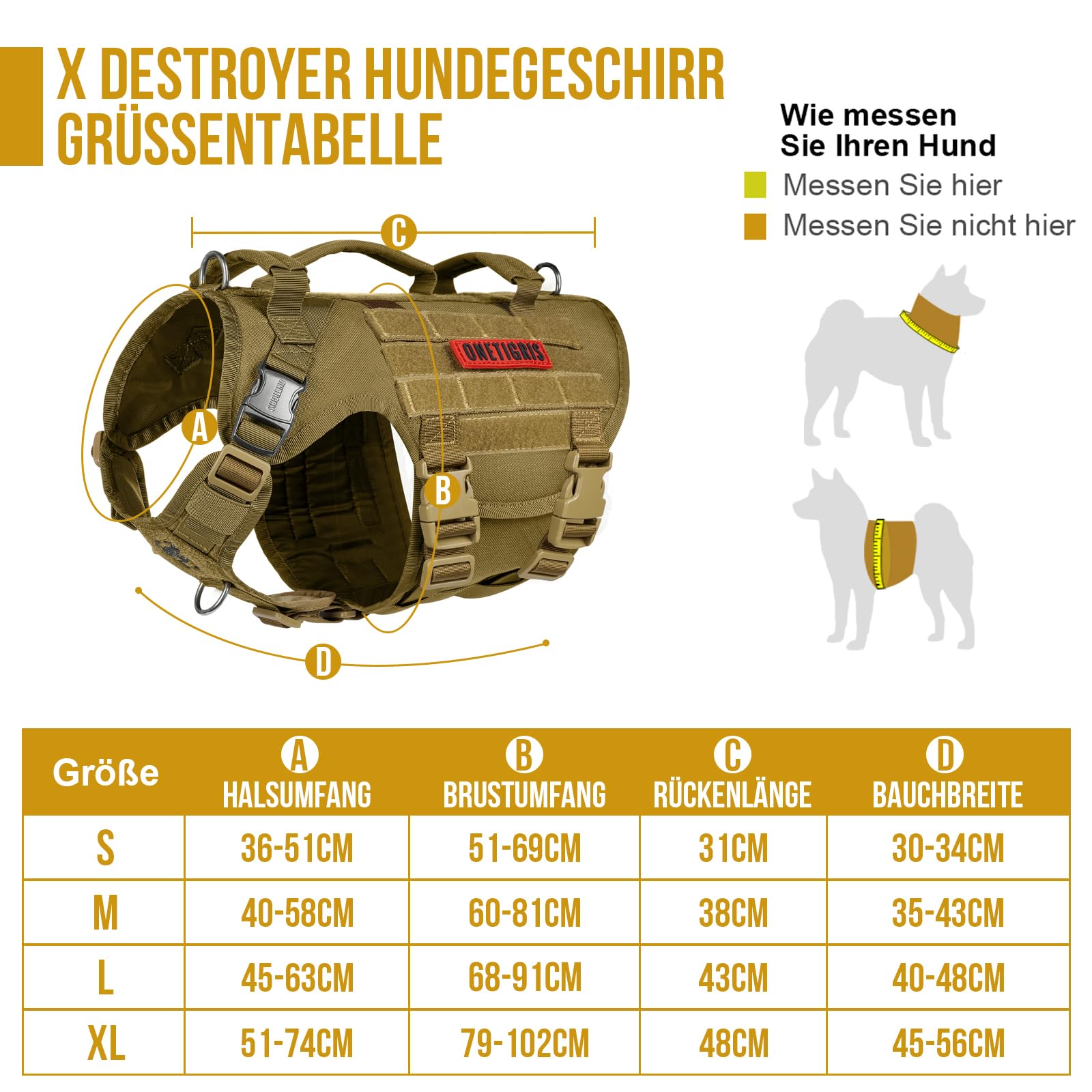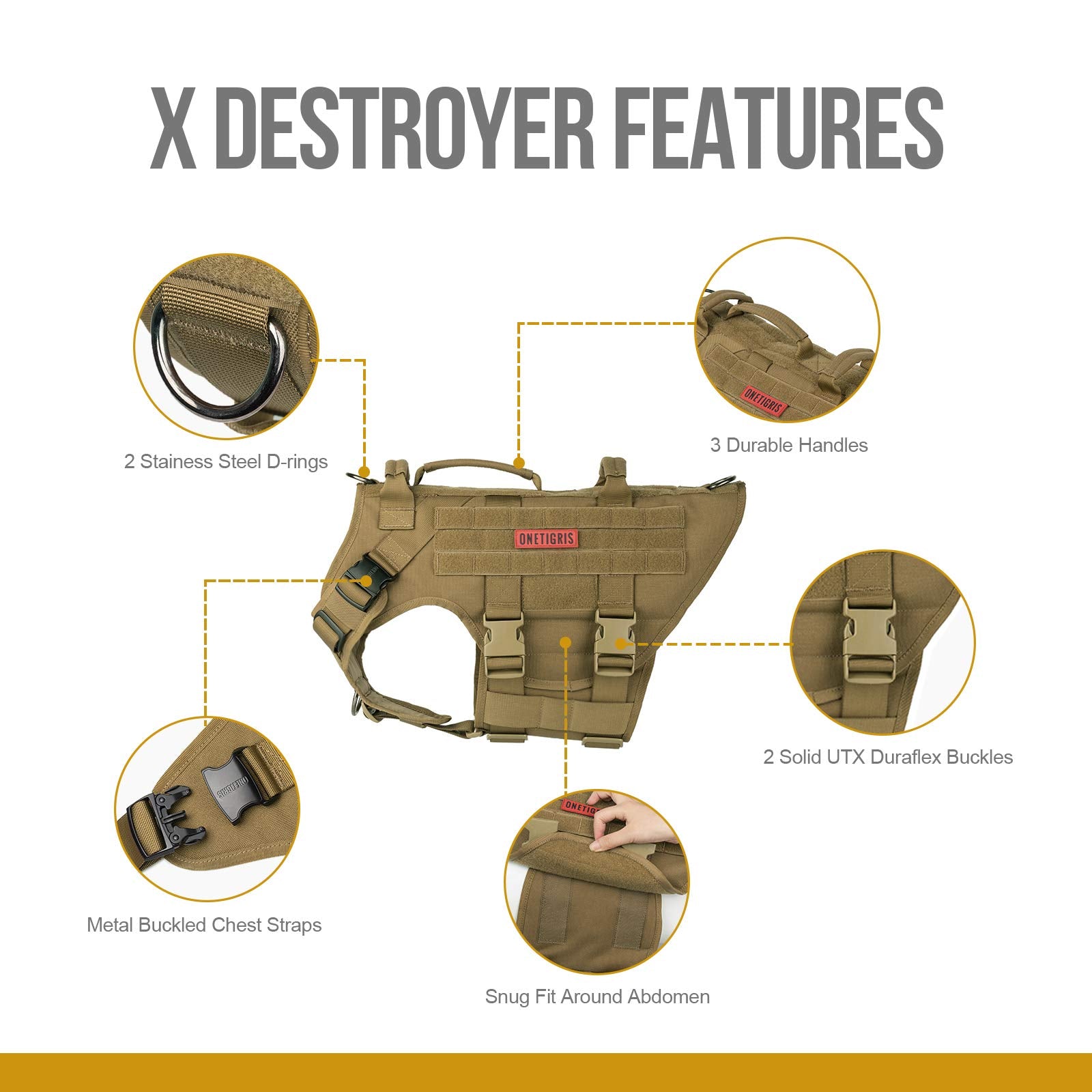 Arnés para perros, X Destroyer Táctico Ajustable Antitracción Arnés Antierrupción Arnés con 3 asas 2 Hebillas de Metal Arnés de Seguridad (Marrón L)
