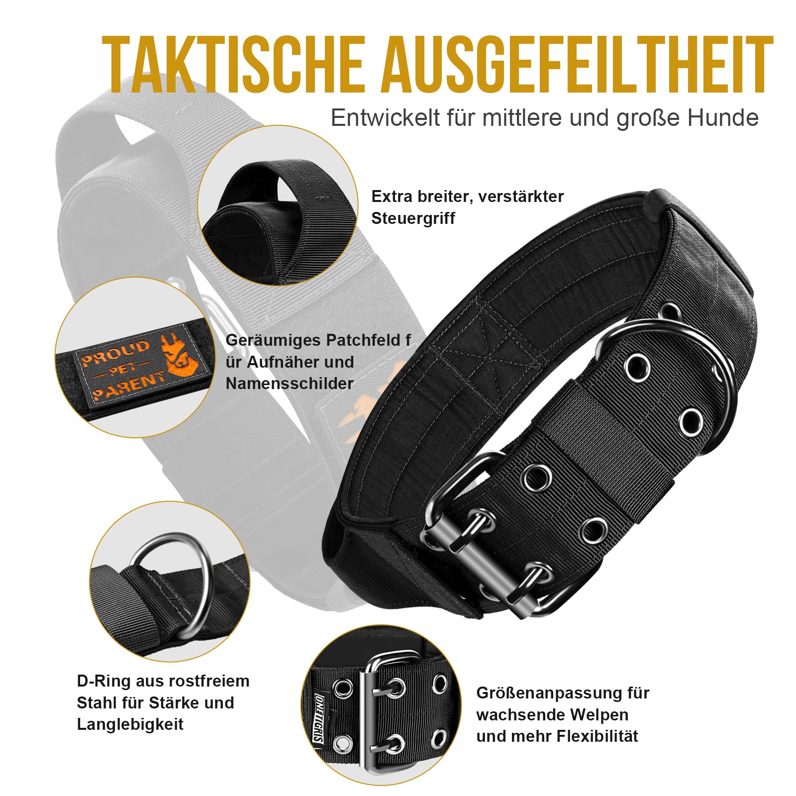 - Panel de parches: collar táctico para perros con grandes paneles de parche para insignias de moral o etiquetas de nombre para personalizar el collar