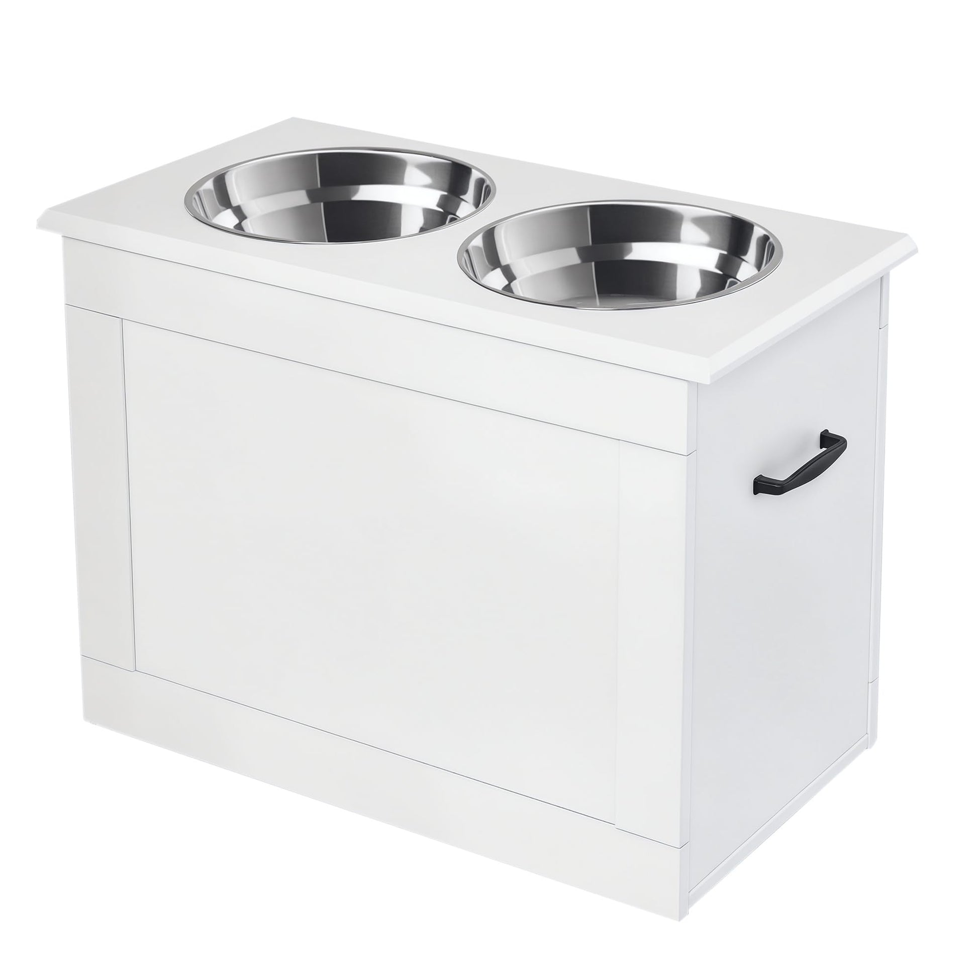 Comedero Perro Elevado con 2 Cuencos de Acero Inoxidable 2x2000 ml Comedero Elevado para Perros Grandes con Tapa Abatible y Almacenamiento Oculto Blanco