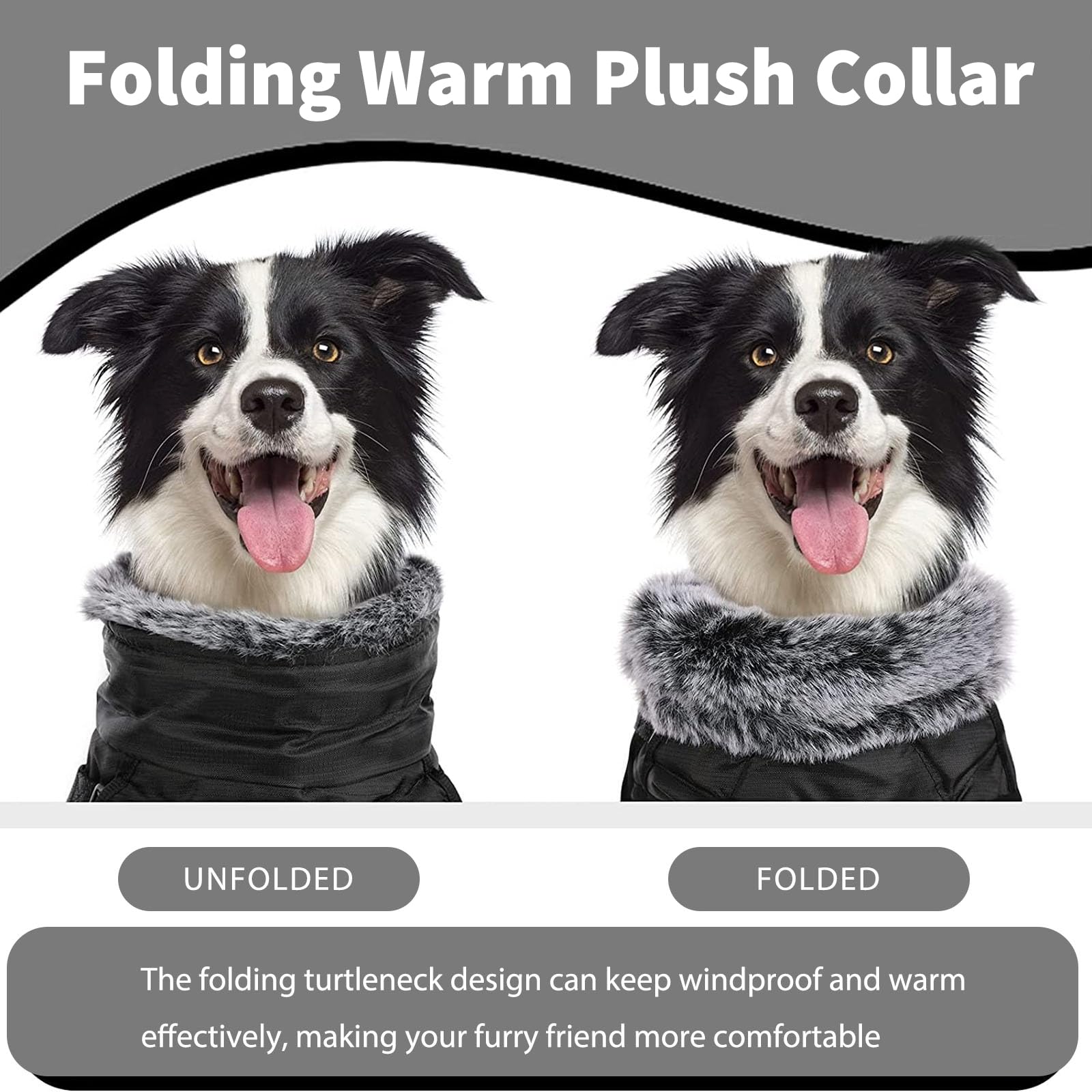 - 【Material】 Este abrigo para perros está hecho de tela Oxford, relleno de algodón de seda en el interior. El cuello peludo grueso y suave, el tacto suave y delicado, el diseño de cuello alto plegable pueden proteger el cuello y la oreja del perro. Mide la circunferencia del pecho de tu perro (muy importante) y la longitud de la espalda (como referencia) siguiendo la guía de tallas para elegir un abrigo de mascota del tamaño correcto.