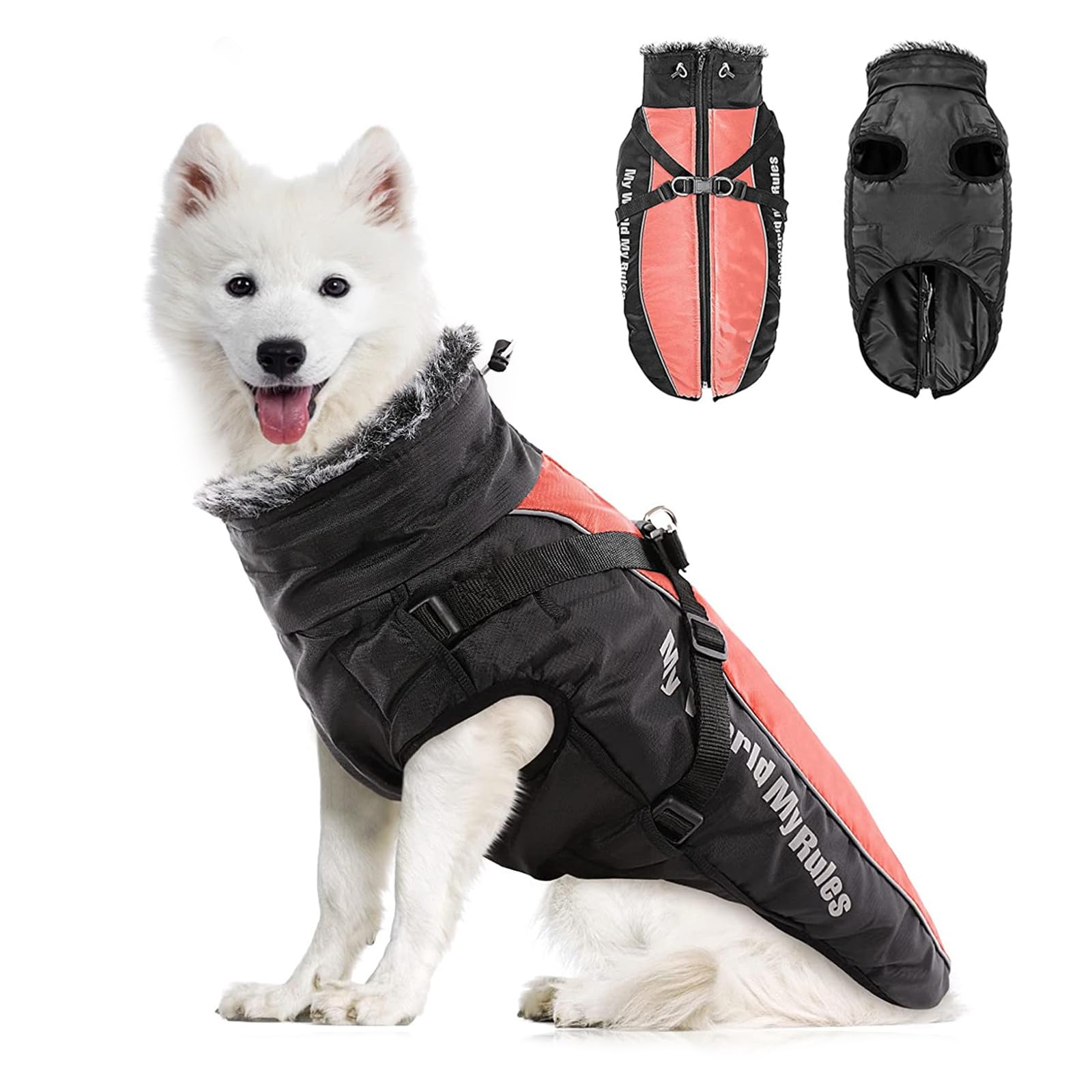 Abrigo para Perro de Invierno,Impermeable Chaqueta de Invierno para Perros con Arnés,Resistente al Viento,Ajustable,Reflectante Ropa para Mascotas Perros Pequeños, Medianos y Grandes