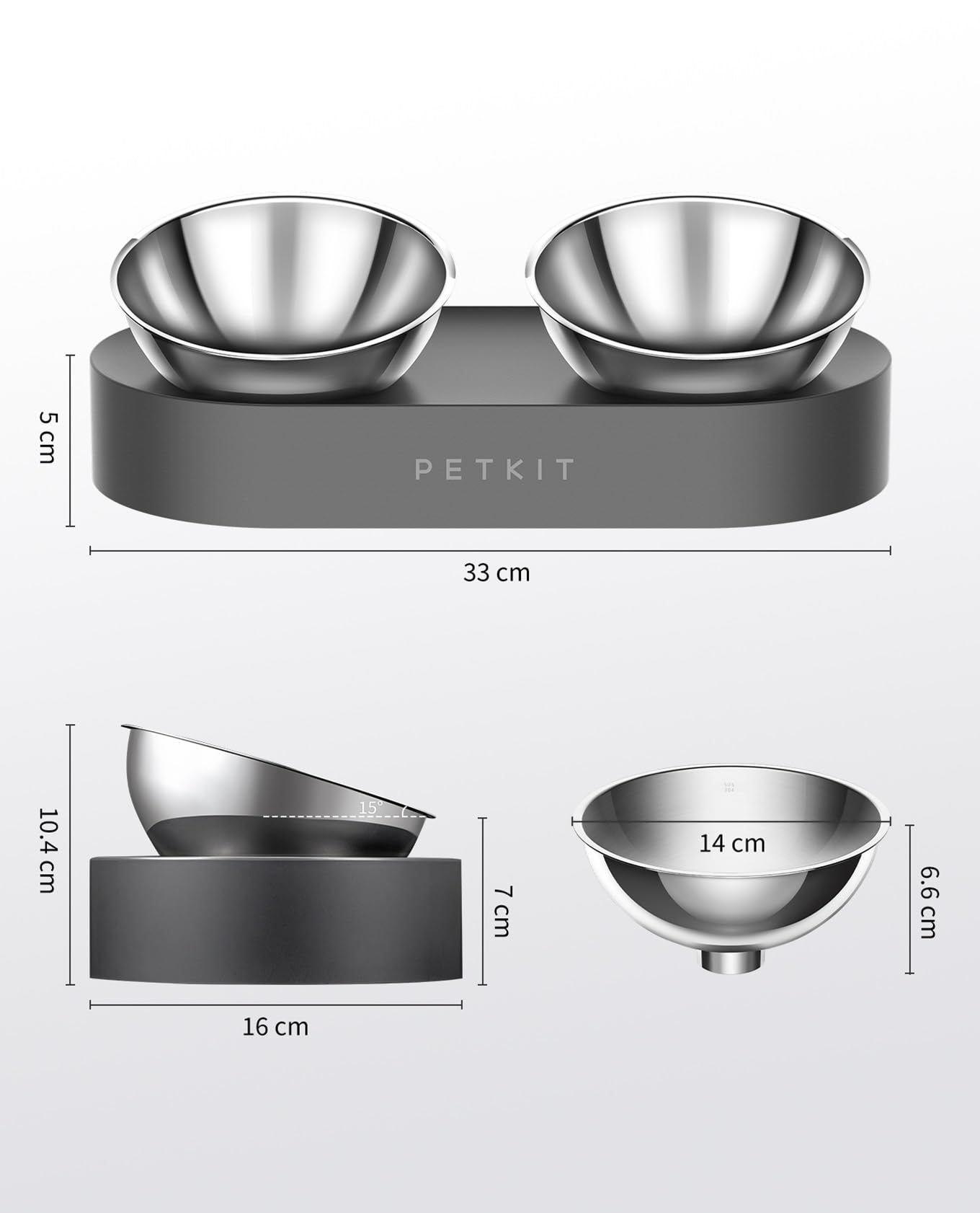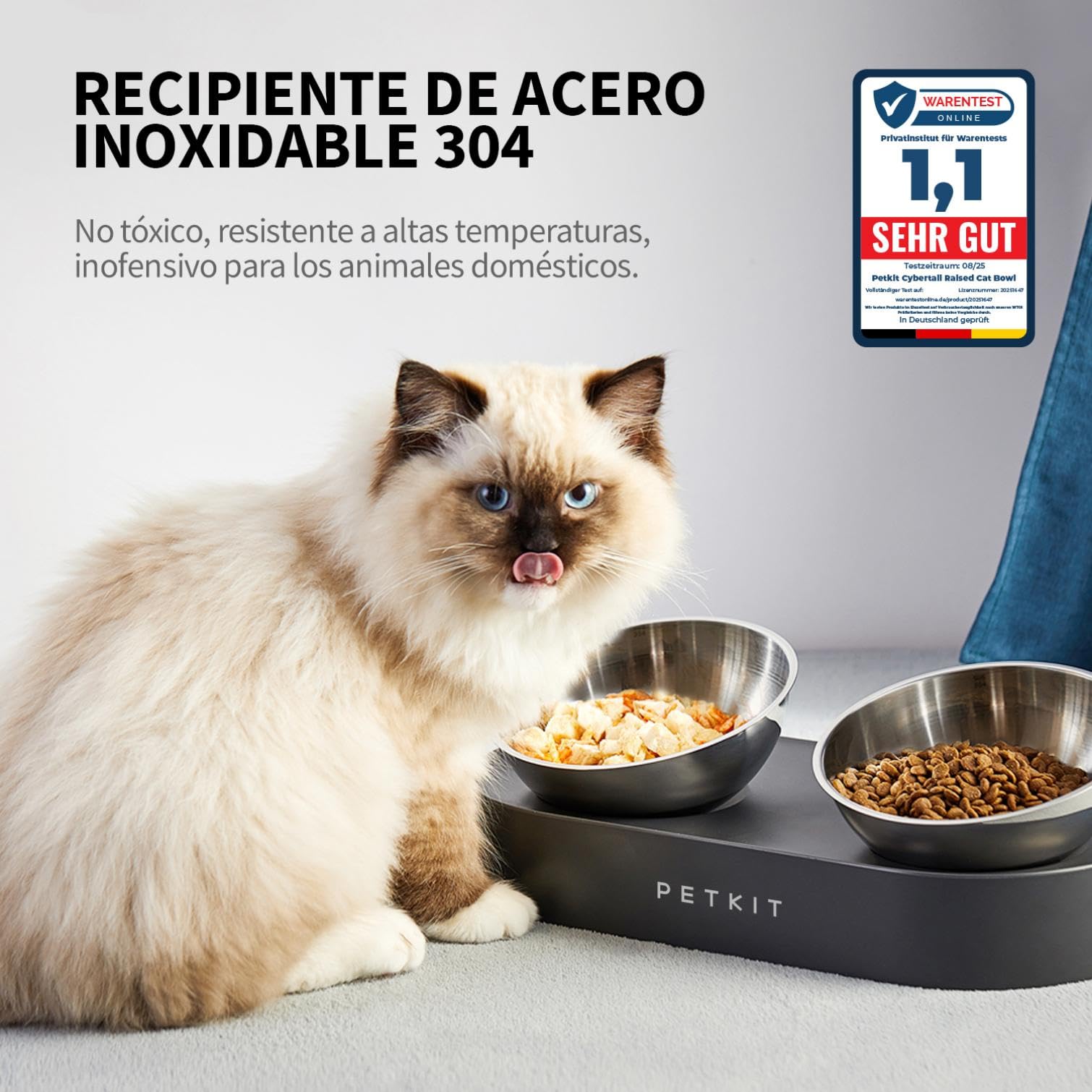 PETKIT CYBERTAIL Cuenco Elevado e Inclinado de Acero Inoxidable, Cuenco de alimentación Antideslizante sin derrames, para Gatos y Perros pequeños