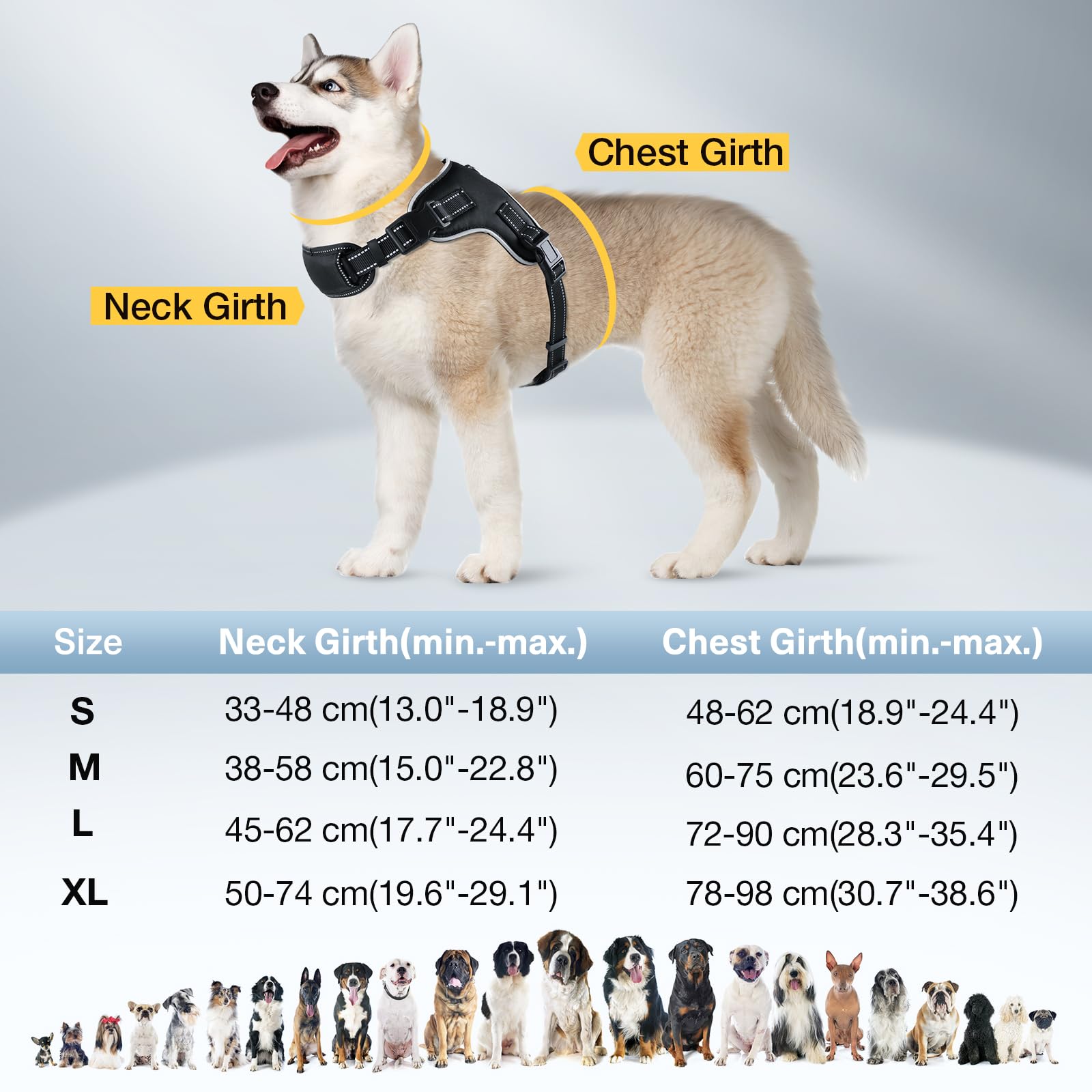 - Cómodo, ajustable y fácil de usar - este cómodo y transpirable tirante para perros acolchado está equipado con botones rápidos para facilitar el desgaste y el desgaste. un cinturón ajustable en el pecho y el cuello puede personalizar la forma adecuada de usar para su mascota. Antes de elegir el tamaño adecuado, mida el cuello y el pecho de su perro.