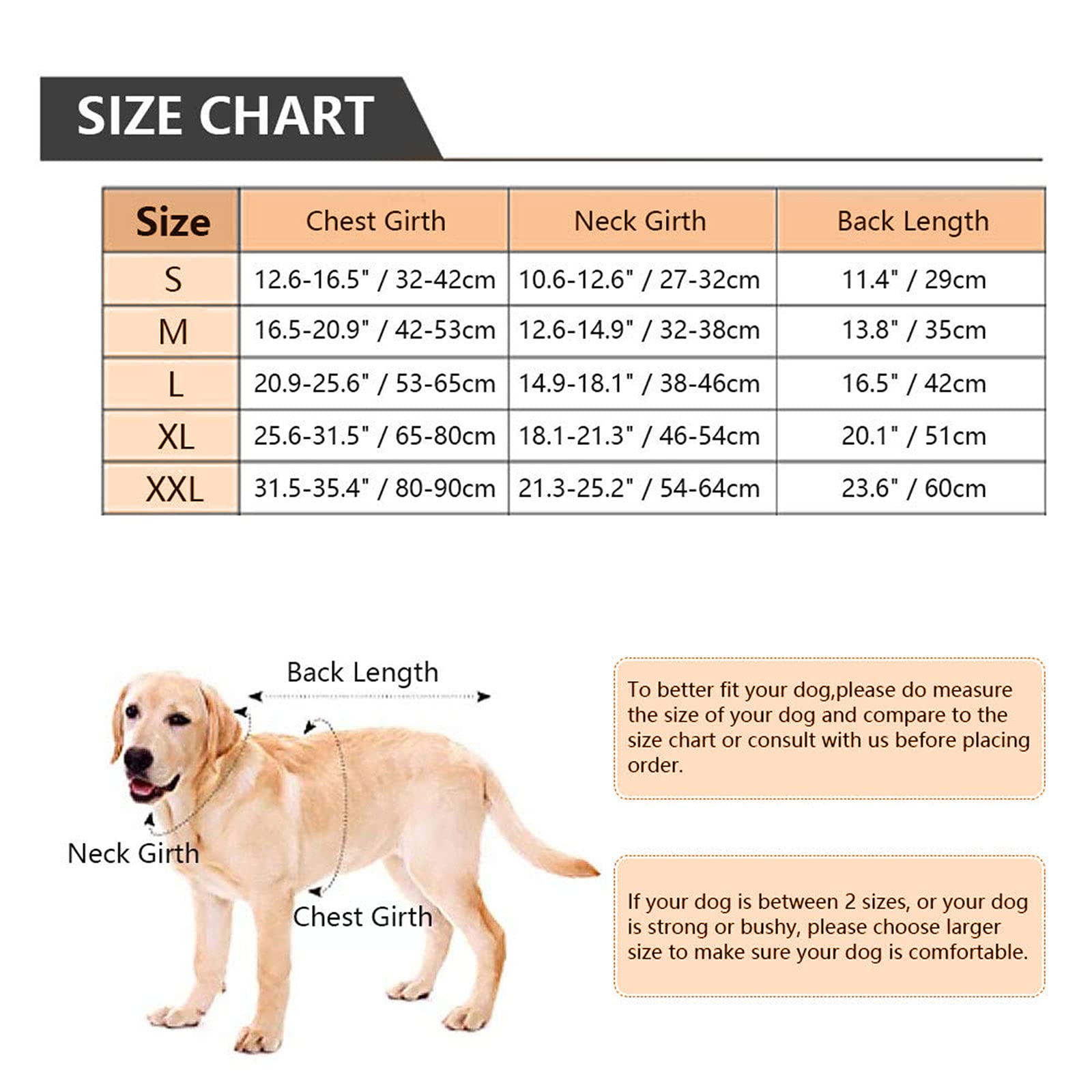 - ❣️【Tamaños】❣️S, M, L, XL, XXL, se adapta a perros de razas pequeñas, medianas y grandes, como Teddy, Beagle, Cocker Spaniel, Poodle, Bulldog, Labrador, Golden Retriever, etc. Si su perro está entre tallas , o si el perro es fuerte o tupido, le sugerimos que seleccione un tamaño más grande para asegurarse de que su perro esté cómodo.
