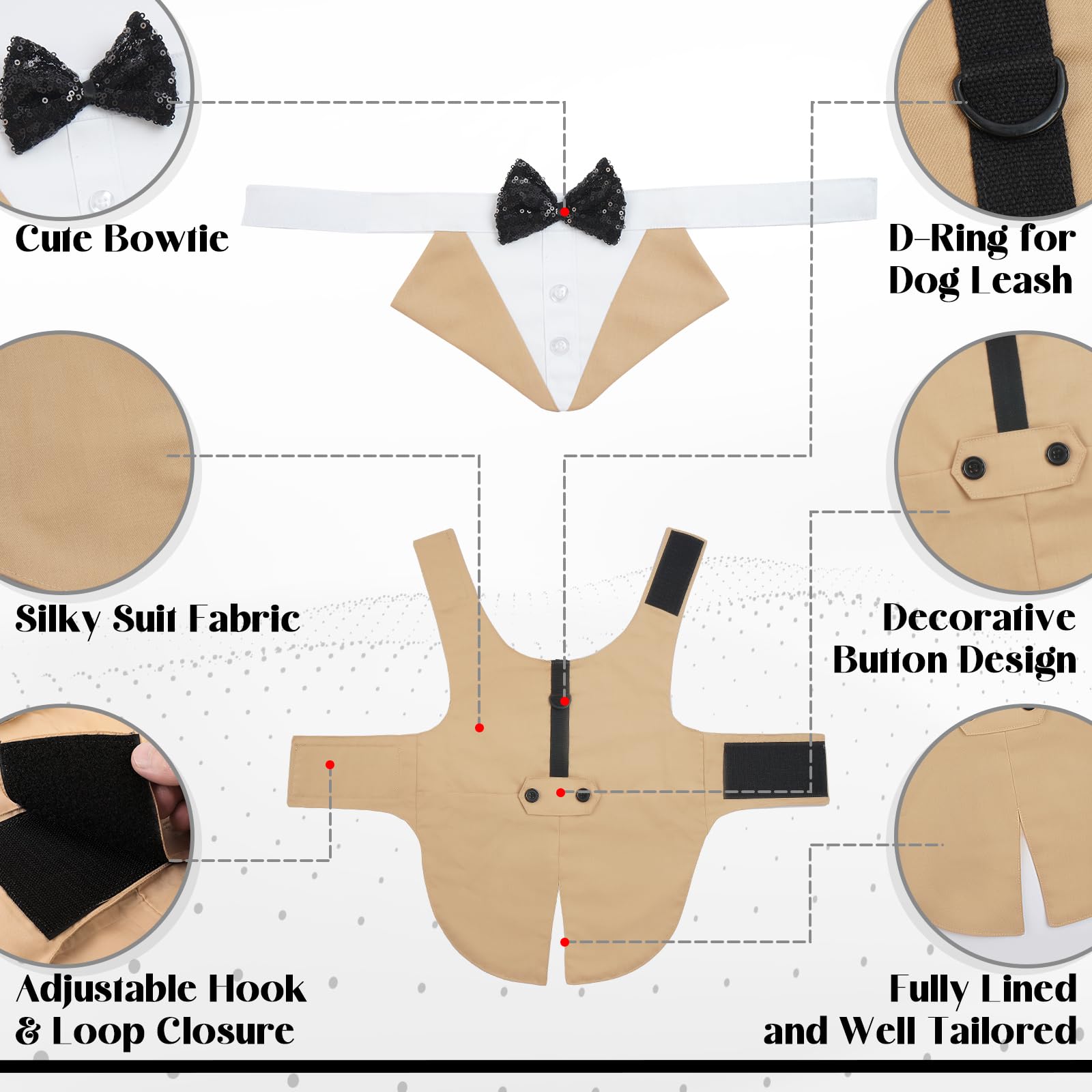 Disfraz Smoking para Perros, Traje de Esmoquin con Lazo Perros Camisa para Cachorros Traje de Perro para Boda Fiesta Ropa Navidad Perro Grande(Champán, XL)