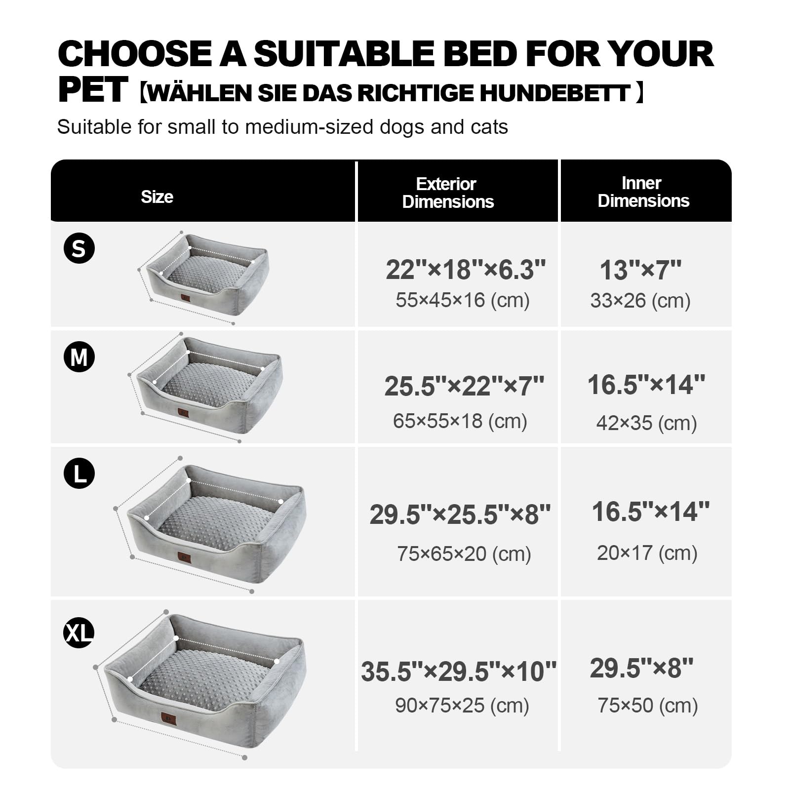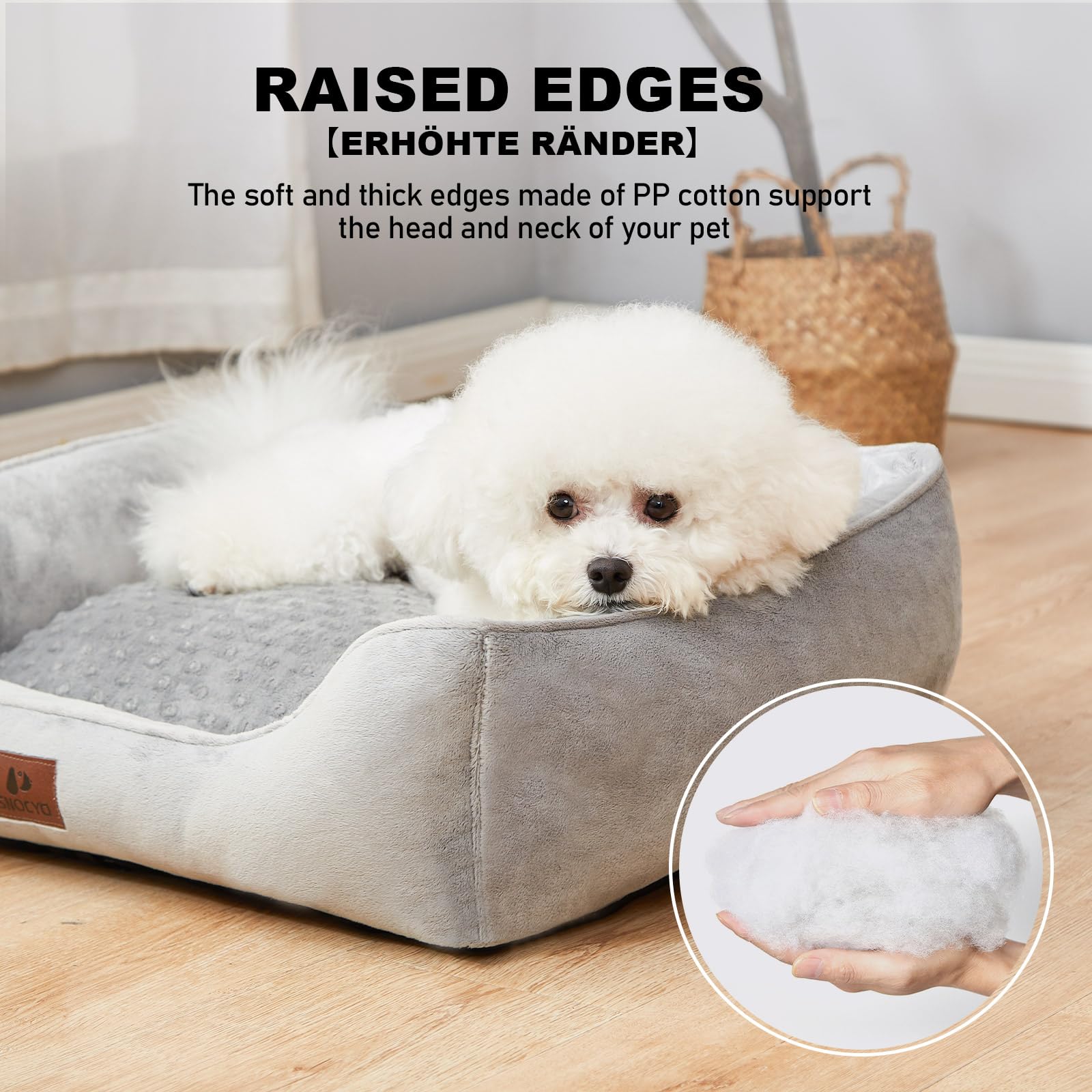Snocyo Cama para Perros Pequeños y Gatos 55 x 45 x 16 cm, Cojín Lavable Con Funda Extraíble, Sofá Con Bordes Elevados, Mullida Con Puntos de Anclaje, Gris