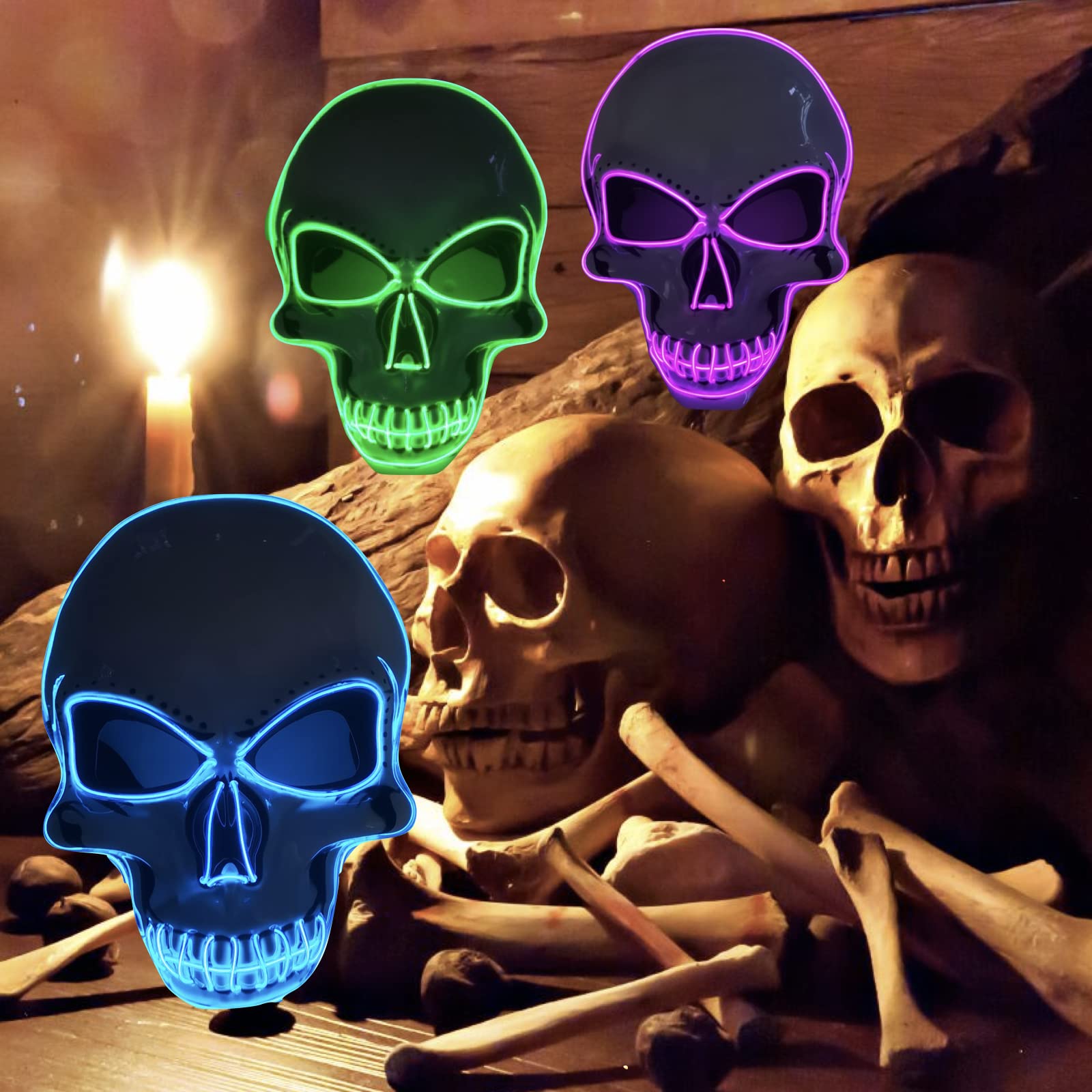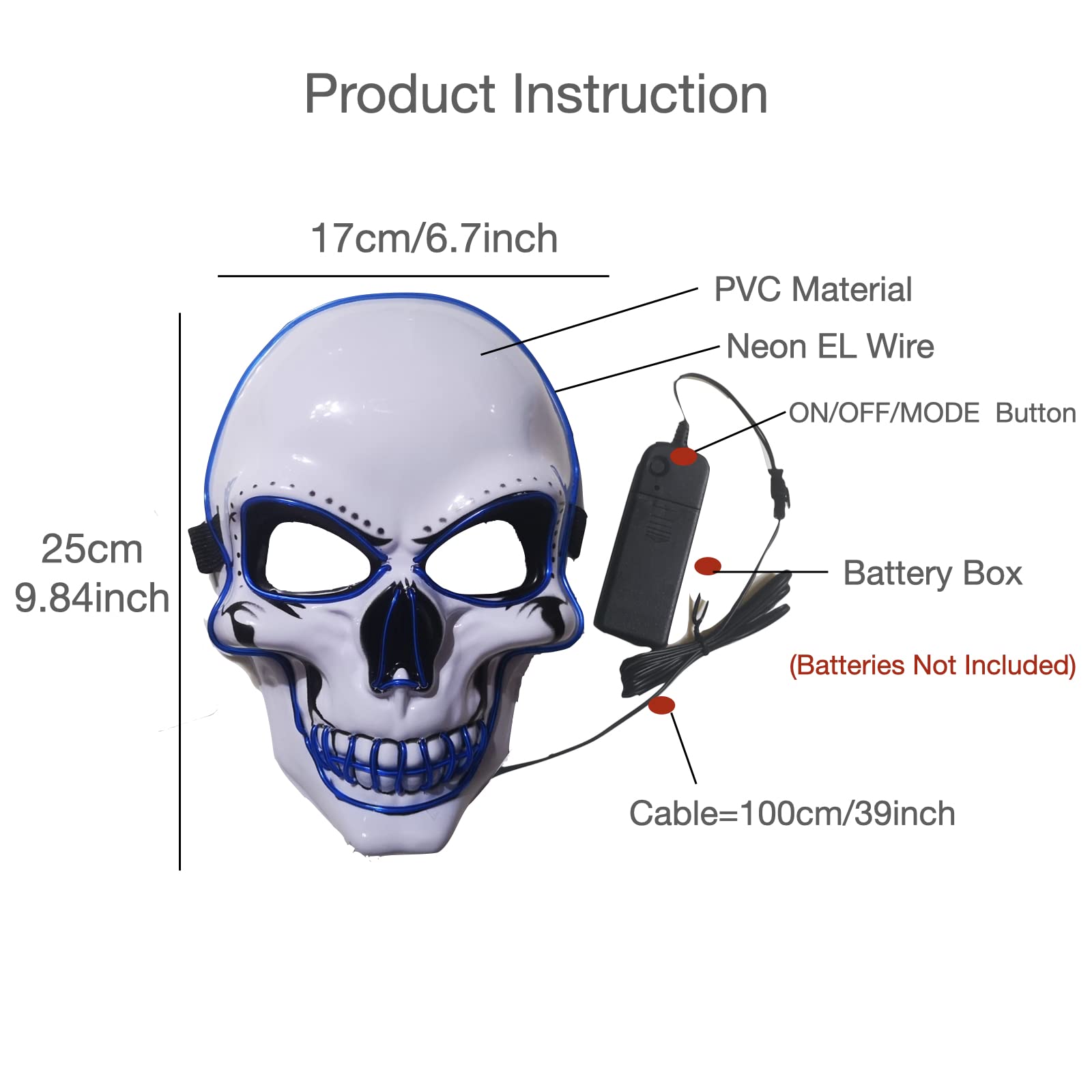 SOUTHSKY LED Maschera Cranio Faccia Maschera Luminosa Maschera Notte Luce Neon EL Light Up for Halloween Costume Cosplay Party (Azul)