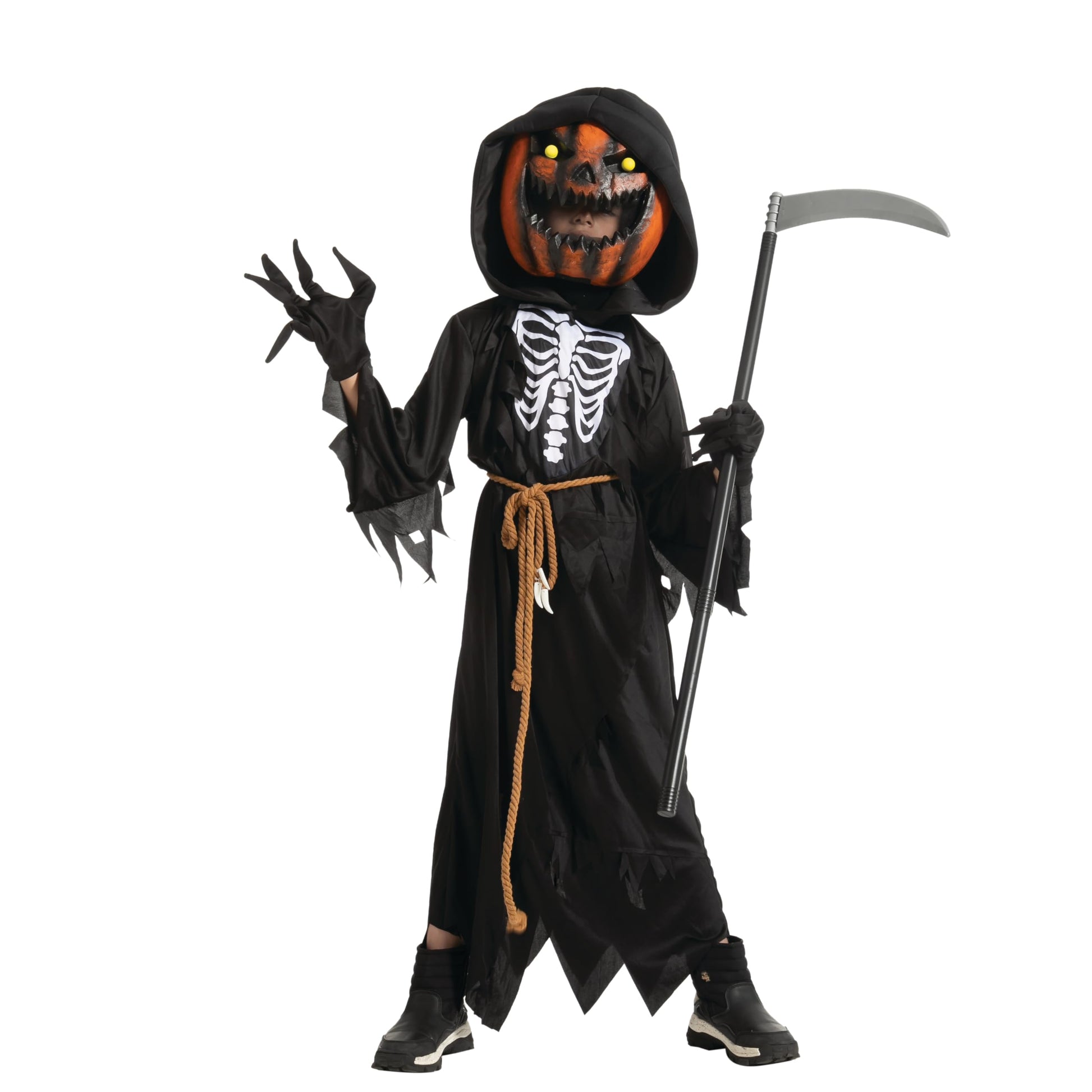 Disfraz de espantapájaros y calabaza para niño de Halloween con cabeza de calabaza para cosplay y juegos de rol (extragrande (12-14 años))