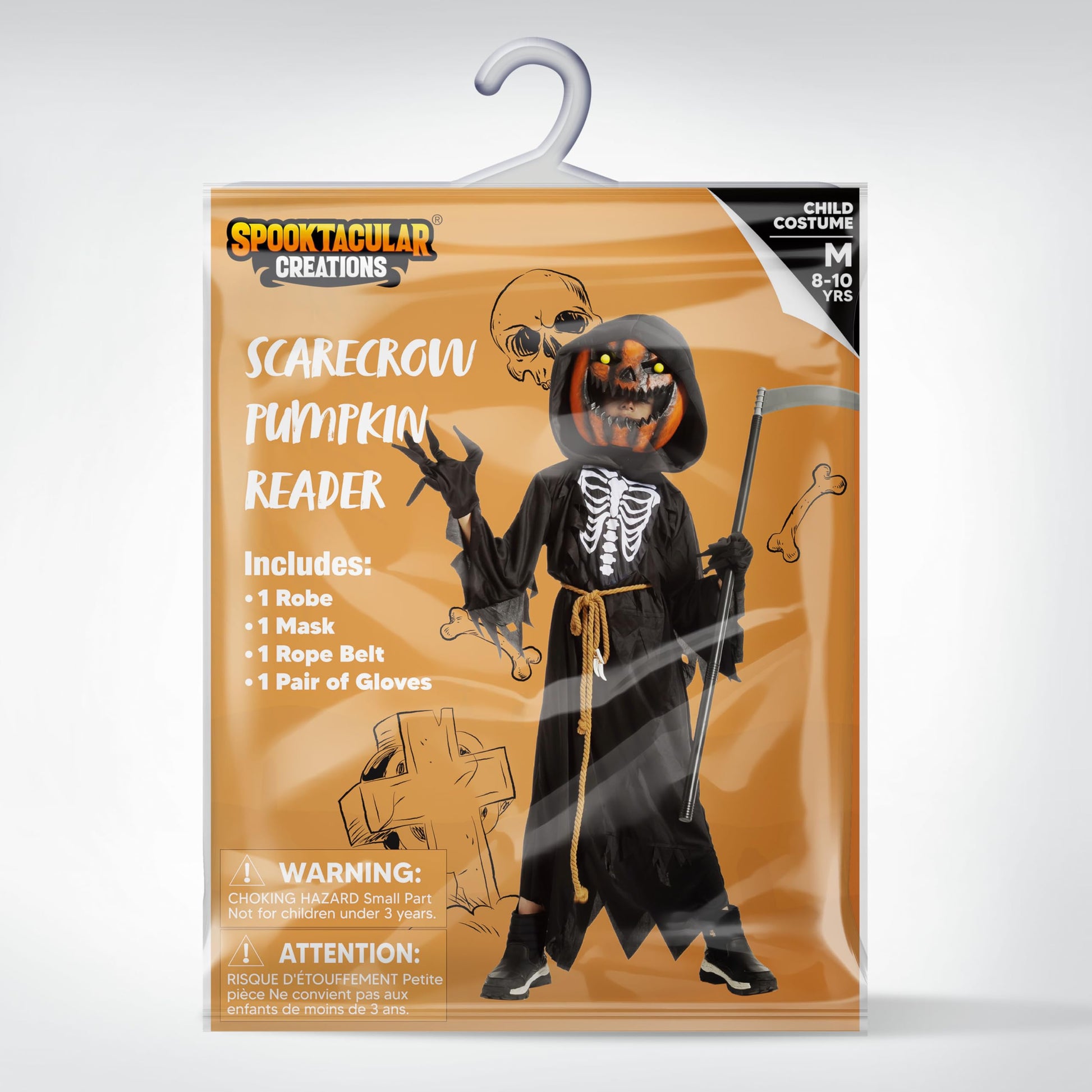 ¿Por qué no disfrazar a los niños de espantapájaros y calabazas parca para la fiesta de Halloween de este año? Disfraz de espantapájaros y calabazas parca de Spooktacular Creations para niños, ideal para eventos de Halloween, juegos de rol y fiestas. El disfraz de espantapájaros malvado con cabeza cabezona de calabaza incluye capucha marrón con collar de cuerda, máscara de calabaza malvada, bata de patchwork con cinturón de cuerda y guantes de espantapájaros. Disfraz especial de espantapájaros para Halloween para niños. Duradero. De mayor calidad. 100 % poliéster. Paquete económico para juegos de rol. Ideal para fiestas de disfraces de Halloween, festivales, disfraces de fiestas temáticas, disfraz de granjero infantil, juego de rol de bruja del oeste, disfraz de espantapájaros de Oz, fiesta de Abracadabra, juego de rol de El maravilloso mago de Oz, reuniones familiares, actividades, obras escolares y mucho más. Lavar a mano con agua fría. Secar al aire. No usar lejía. Prueba de seguridad aprobada. ¡Fácil de usar y disfraz de Halloween único! ¡Agregue mucha diversión a su fiesta de Halloween y otras actividades temáticas!