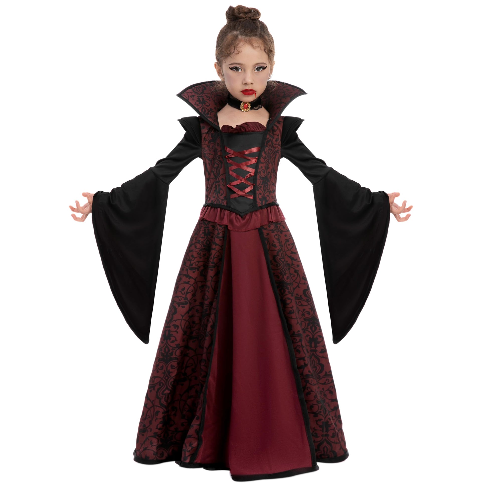 - Paquete de Súper Valor para juegos de rol de vampiresas y suministros para fiestas. Excelente para disfraces de Halloween, fiestas temáticas renacentistas, medievales y de Drácula, accesorios de vampiro, disfraz de vampiresa de murciélago gótico aterrador para niños y niños pequeños, disfraz de vampiro de 3t, 4t, 5t y 6t para niñas, Disfraz de truco o trato, Obras de teatro.