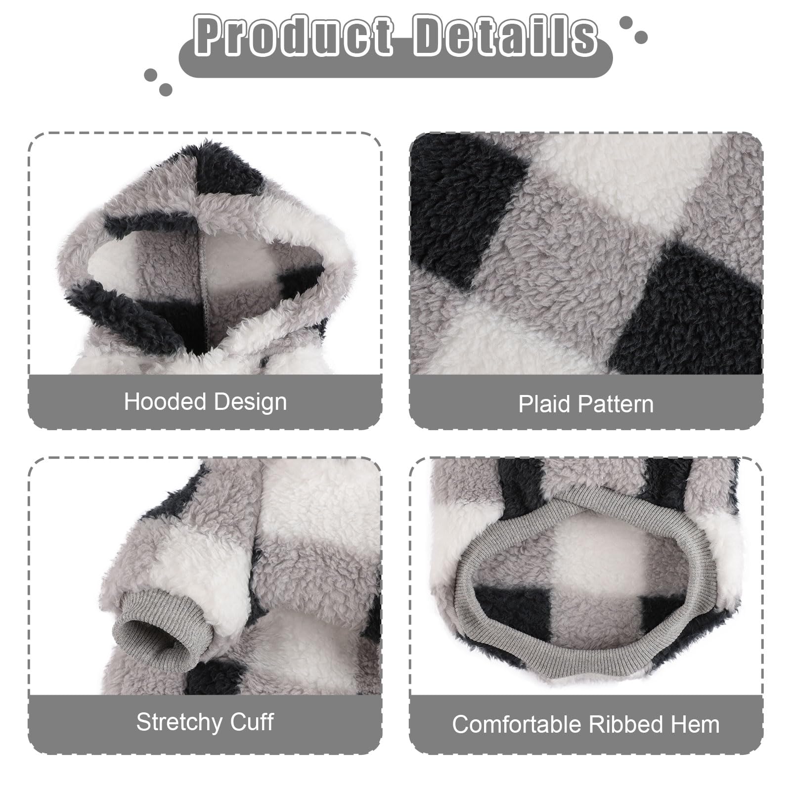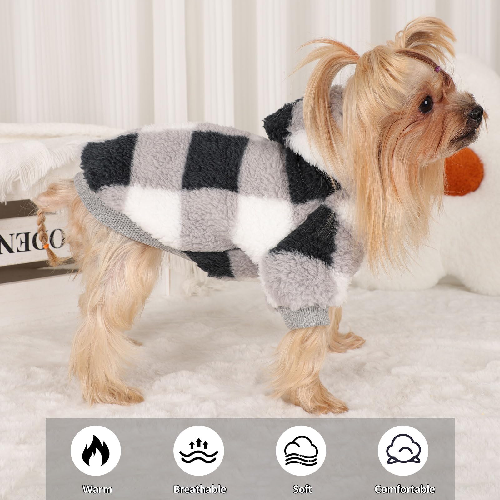 Sudadera de Forro Polar con Capucha para Perros pequeños, suéter cálido de Invierno para Cachorros, Ropa para Chihuahua, Yorkie, Taza de té, Ropa para Gatos (Negro a Cuadros, Talla XXS)